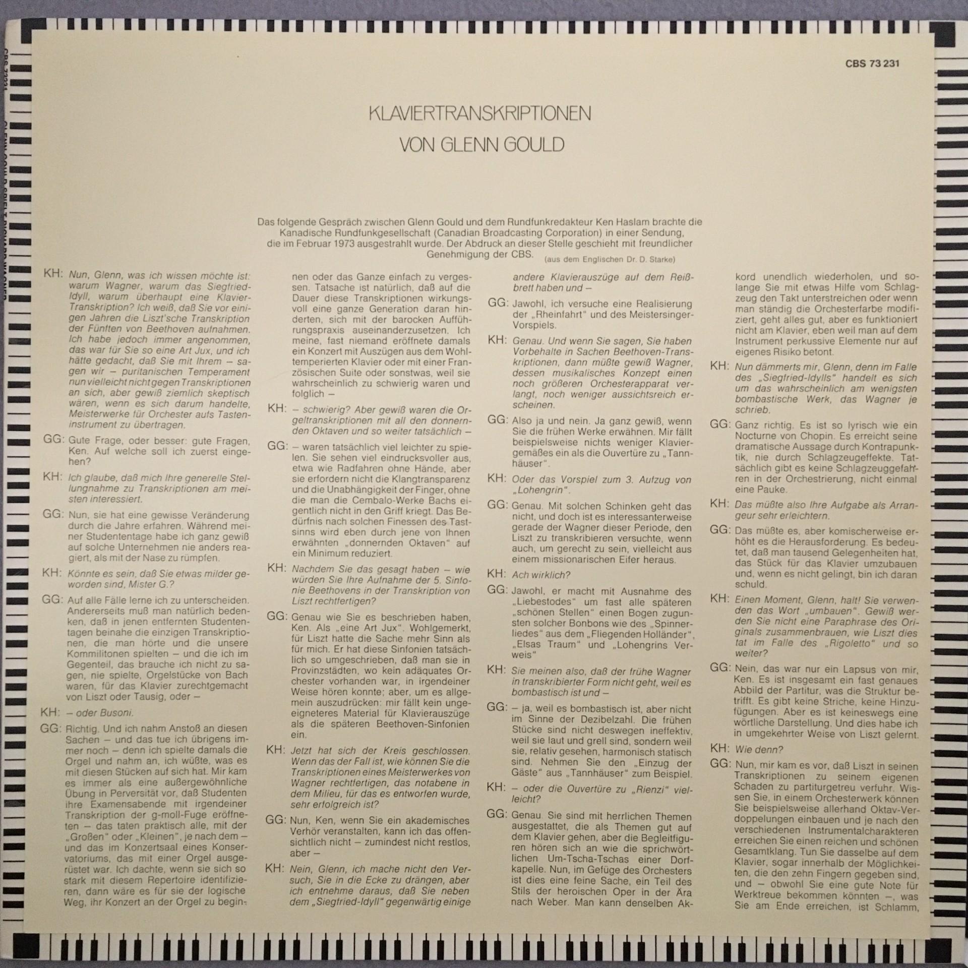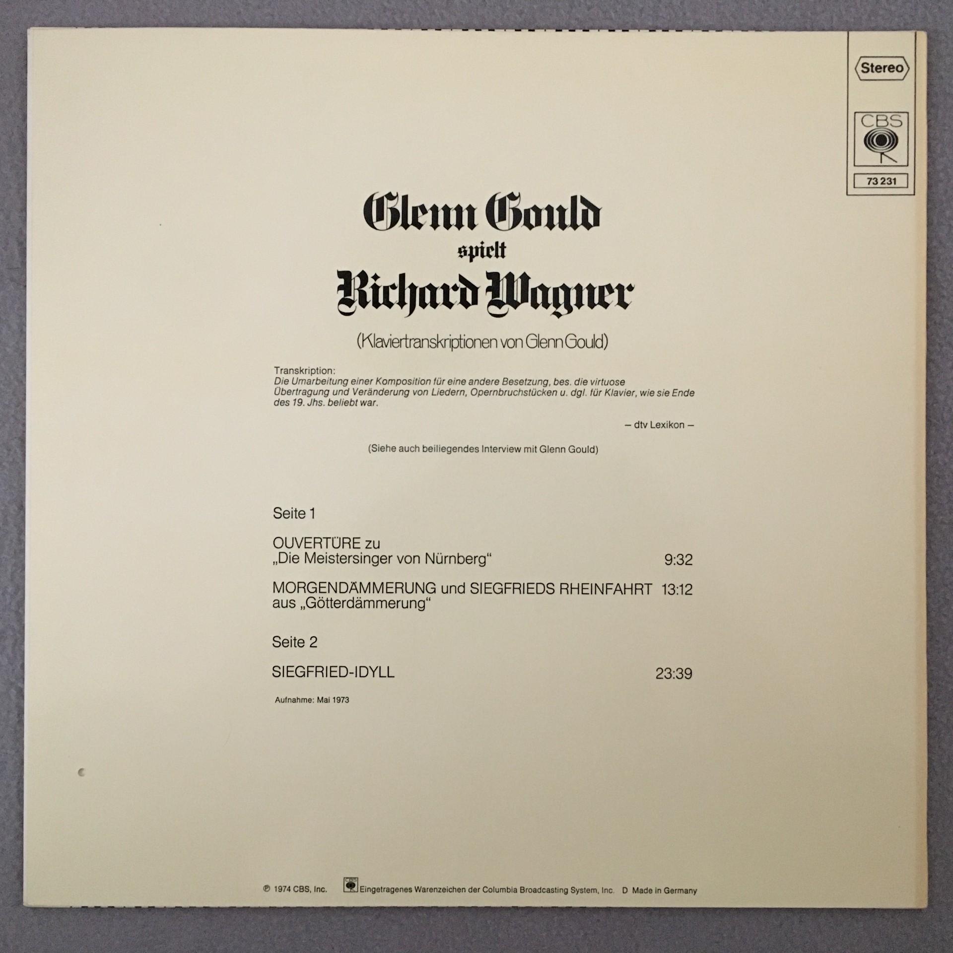 O825 Wagner Overture Siegfried Idyll Gould Piano CBS 73 231 Stereo