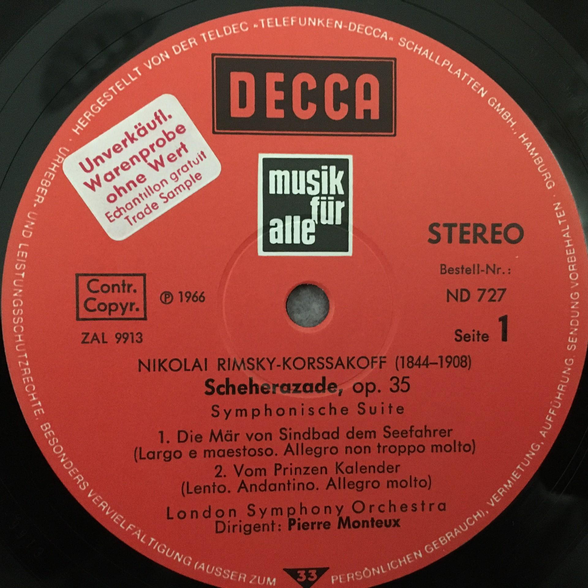 O833 Rimsky-Korsakov Sheherazade Monteux DECCA ND 727 Stereo PROMO