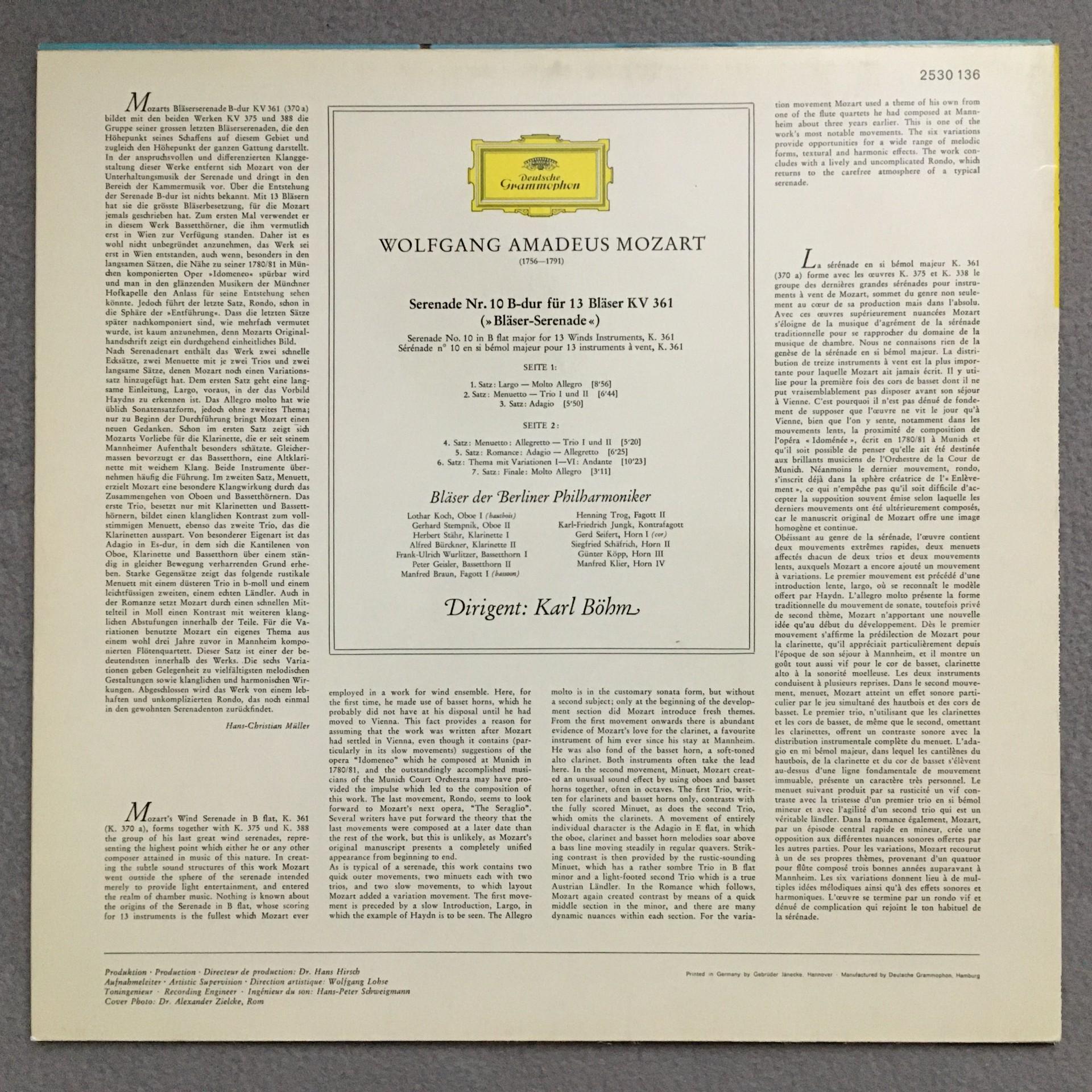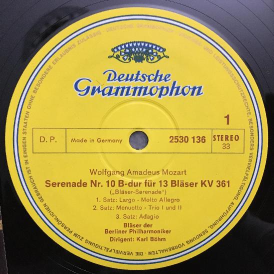 O843 Mozart Serenade for Wind Instruments Bohm BPO DGG 2530 136 Stereo
