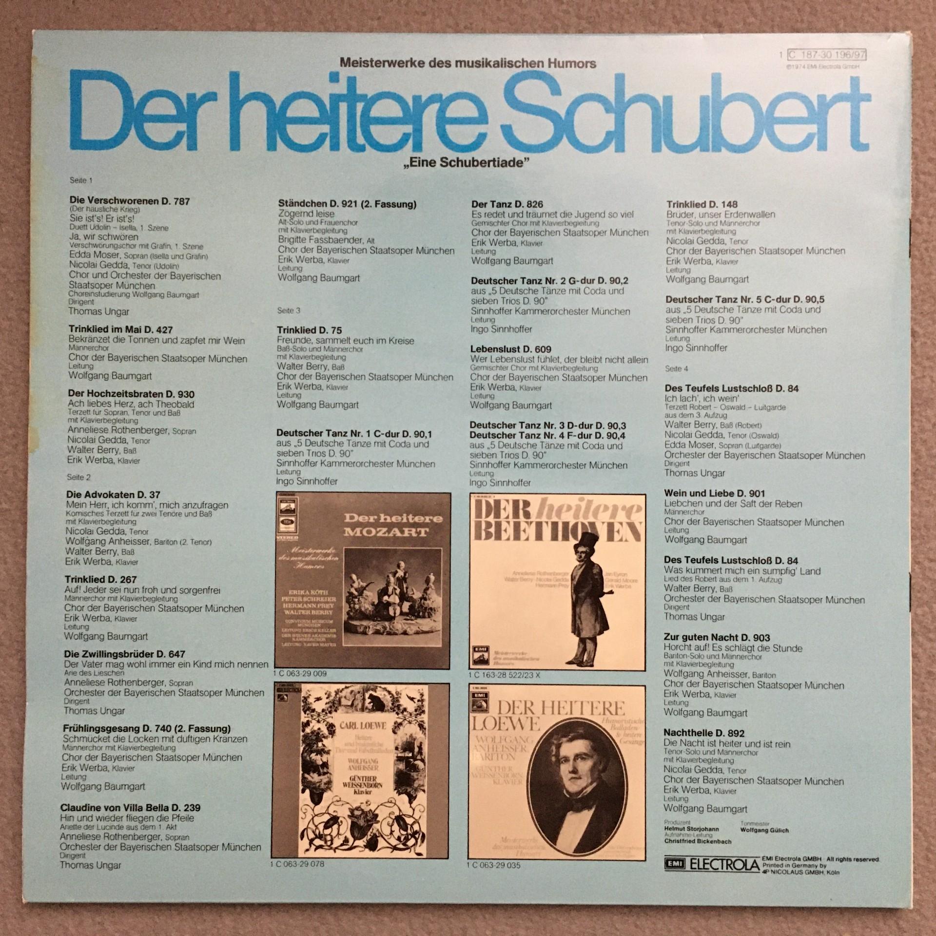 O851 The funny Schubert Fassbaender Werba 2LP Electrola 1 C 187-30 196/97 Stereo
