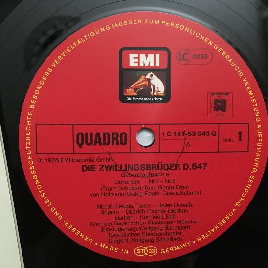 O855 Schubert Die Zwillingsbrüder Wallberg EMI 1C 151-53 043 Quadro