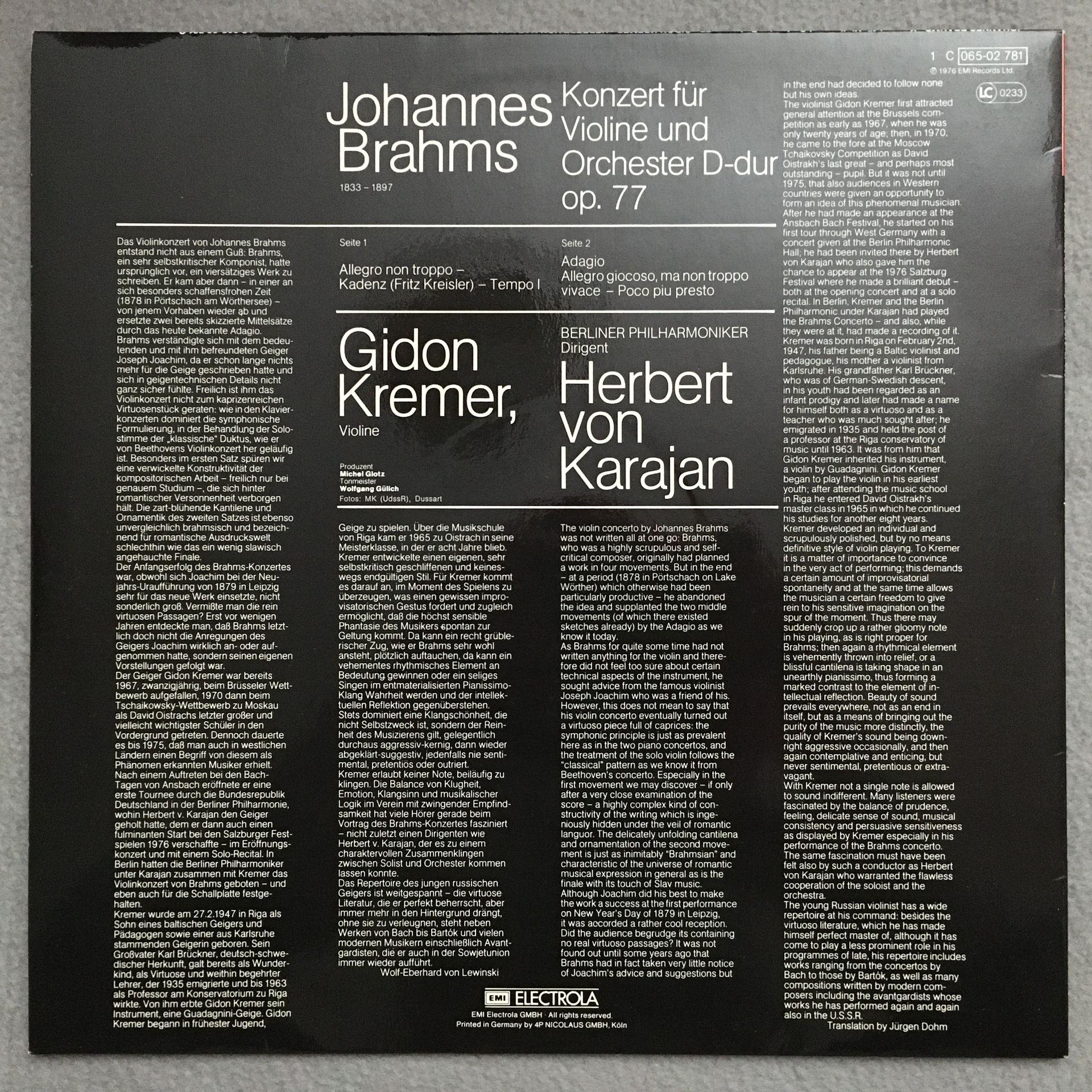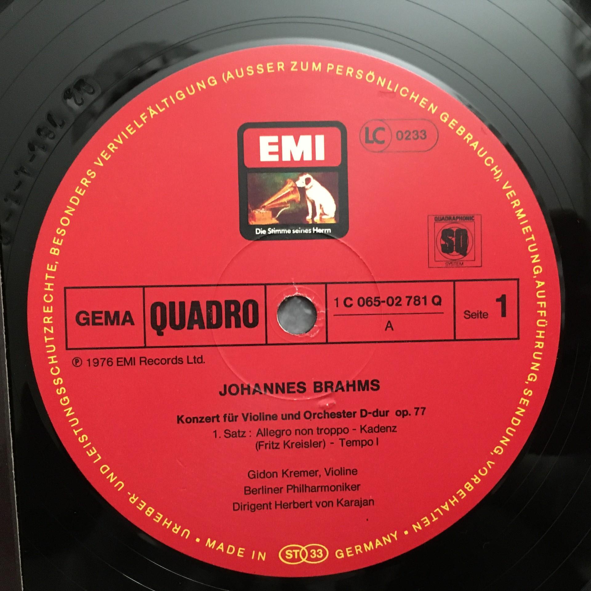 O856 Brahms Violin Concerto Kremer Karajan BPO EMI 1 C 065-02 781 Q Quadro