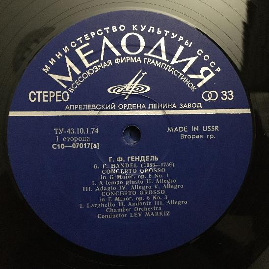 D859 Handel 12 Concerti Grossi Op.6 Markiz 5LP Melodiya C 10-07017-26 Stereo