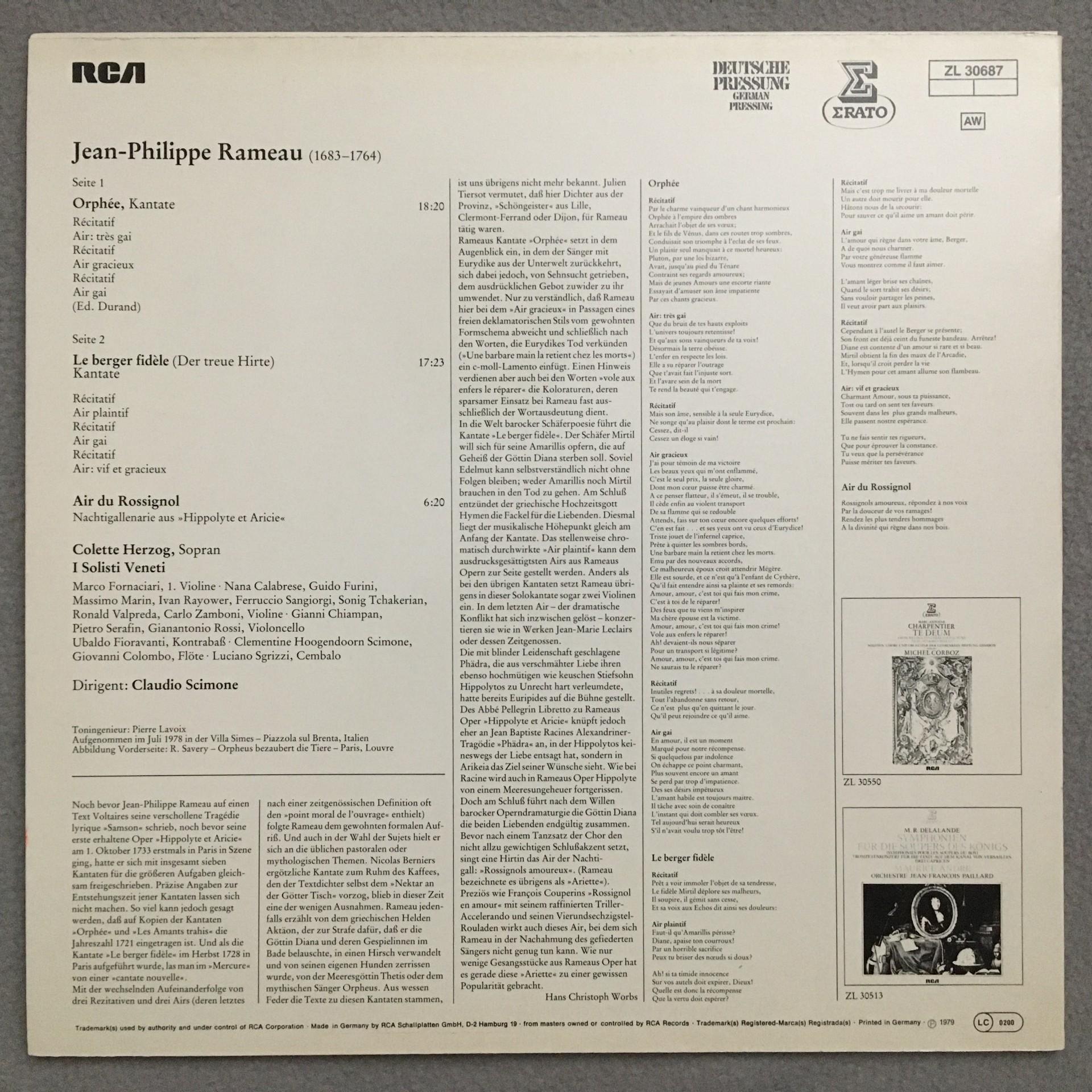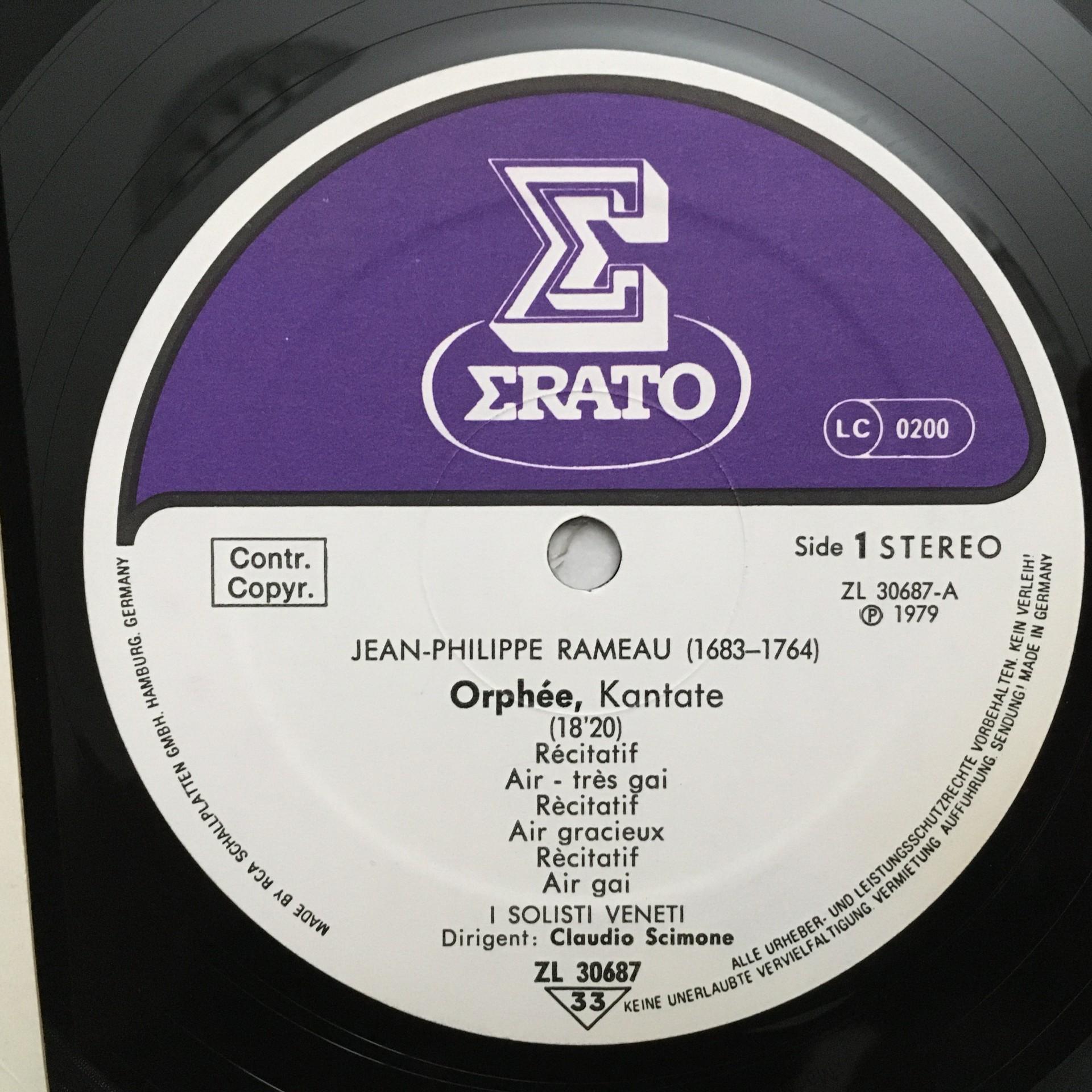 O861 Rameau 2 Cantatas Scimone I Solisti Veneti Erato ZL 30687 Stereo