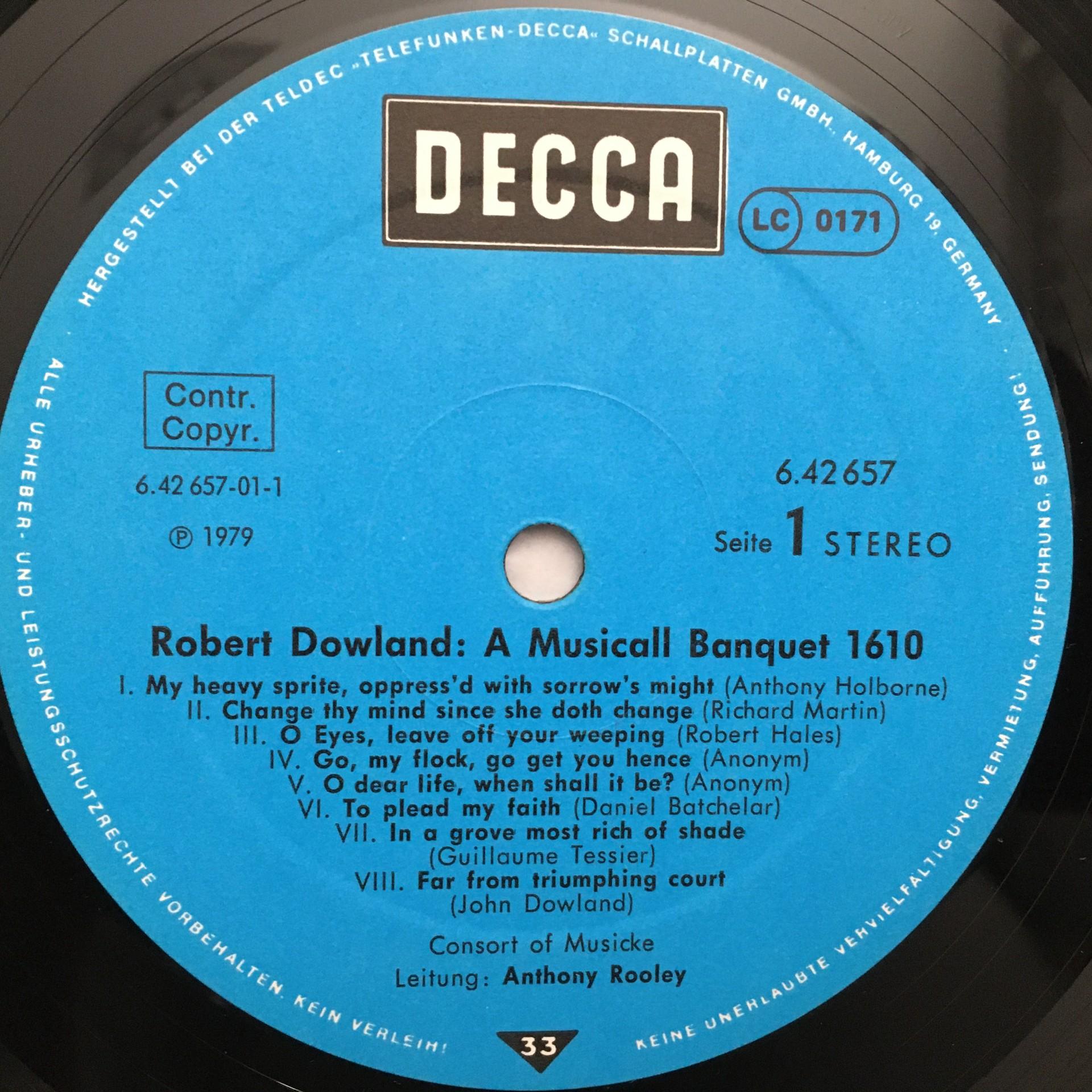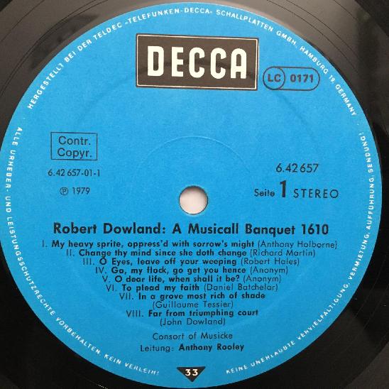 O877 Dowland A Musicall Banquet 1610 Rooley DECCA 6.42657 AW Stereo