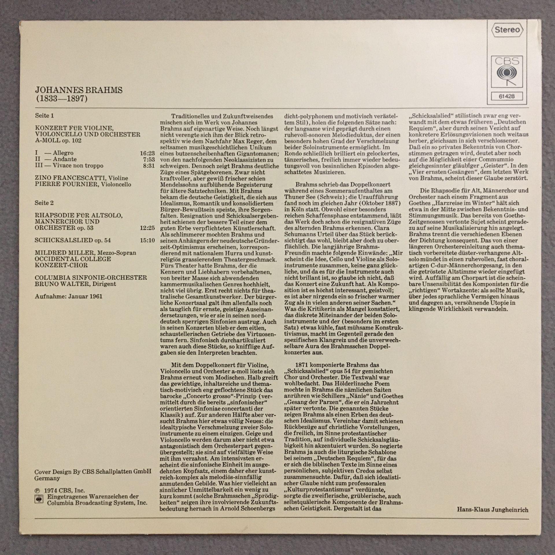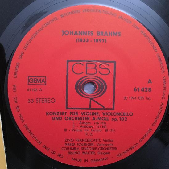 O878 Brahms Concerto Francescatti Violin Fournier Cello Walter CBS 61 428 Stereo
