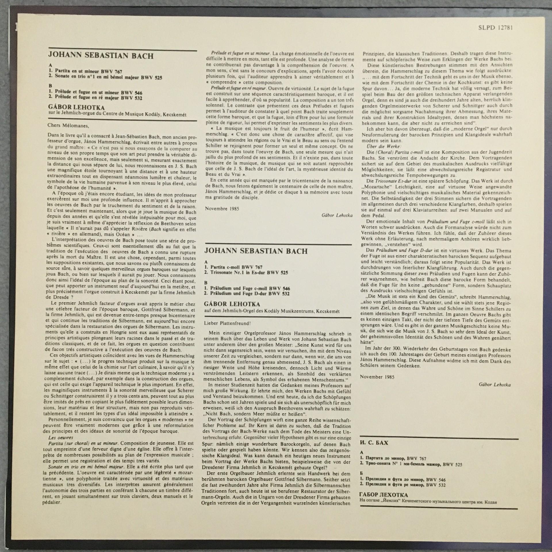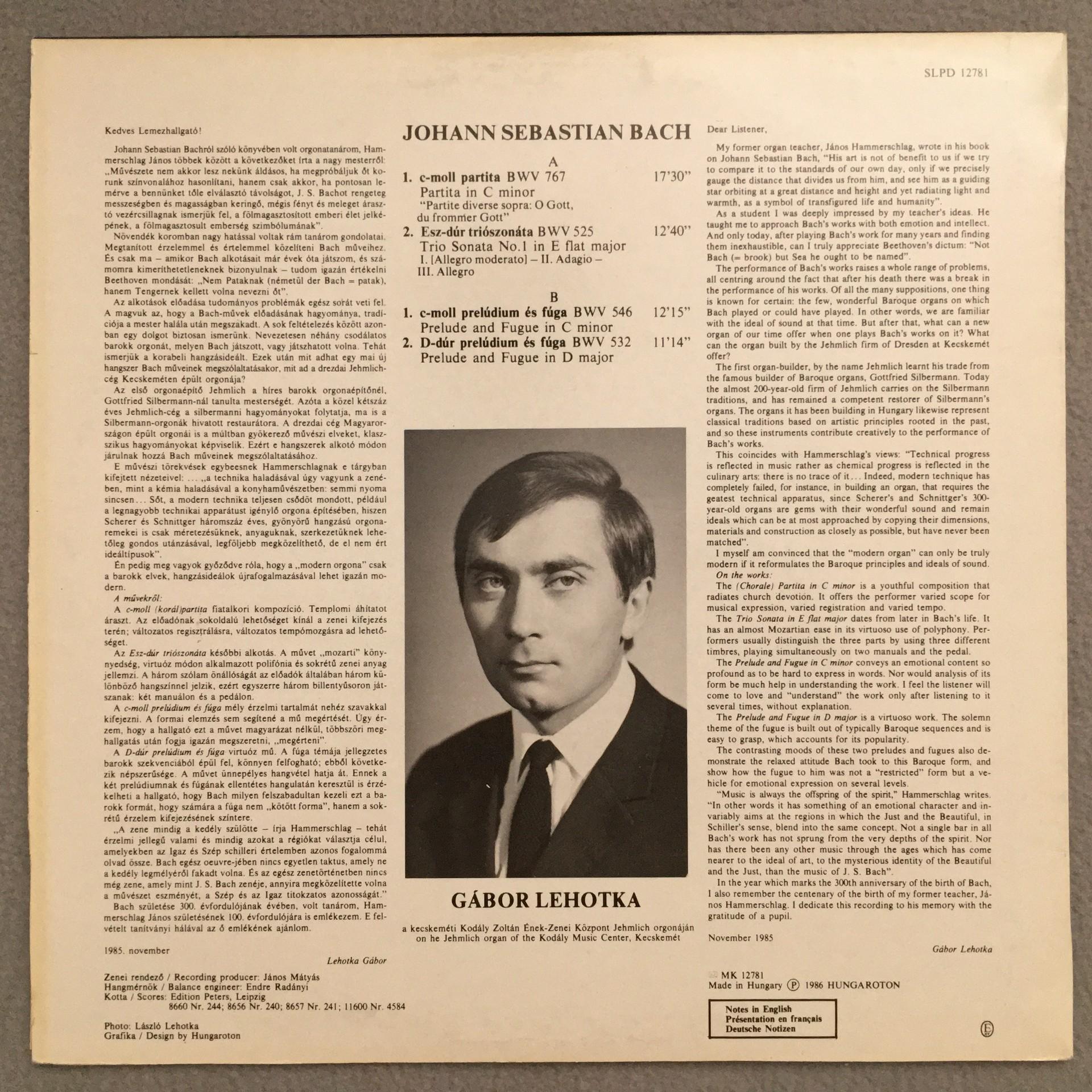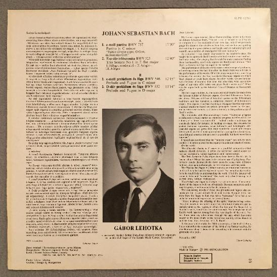 O880 Bach Trio Sonata Lehotka Organ Hungaroton SLPD 12781 Digital Stereo