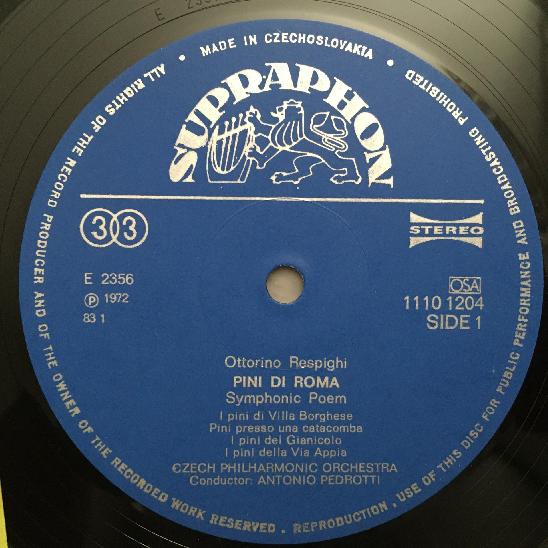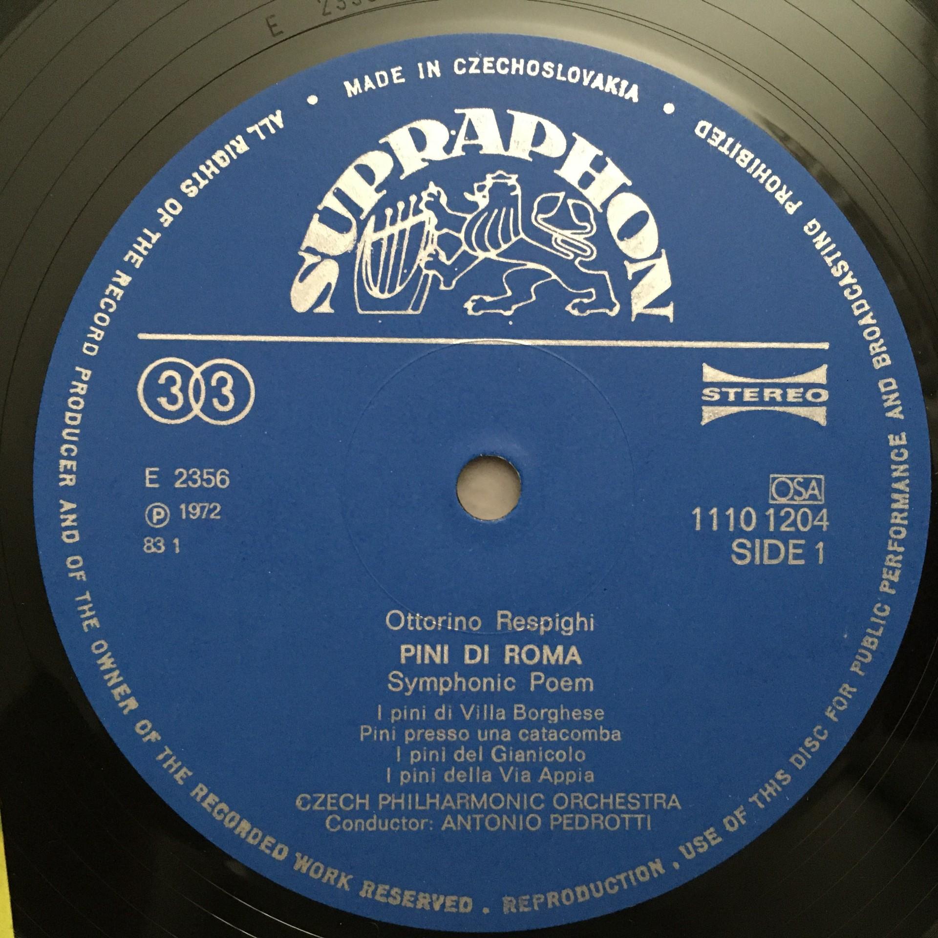 O885 Respighi Pini di Roma Rossini Suite Pedrotti Supraphon 1110 1204 ZA Stereo