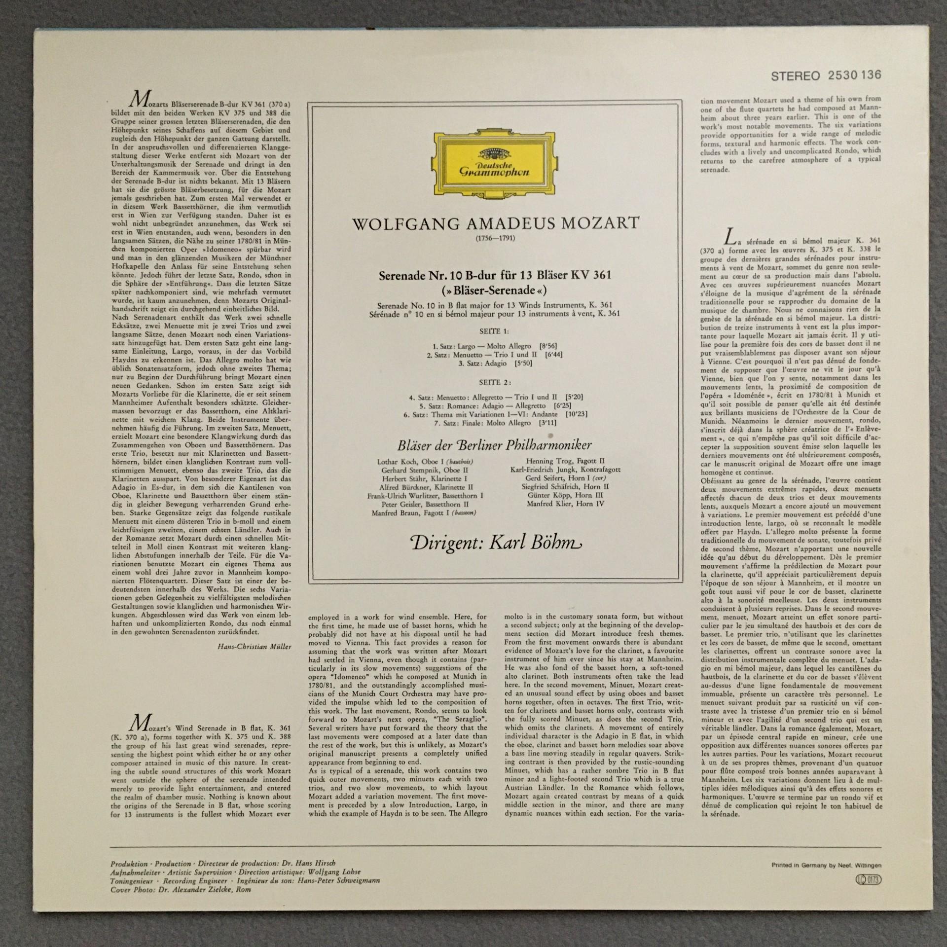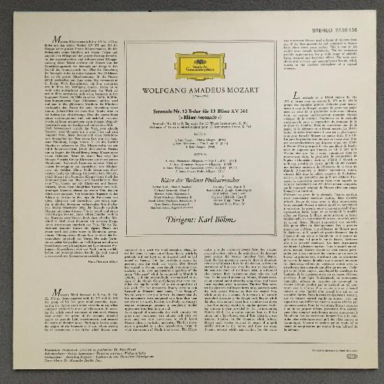 P528 Mozart Serenade for Wind Instruments Bohm BPO DGG 2530 136 Stereo