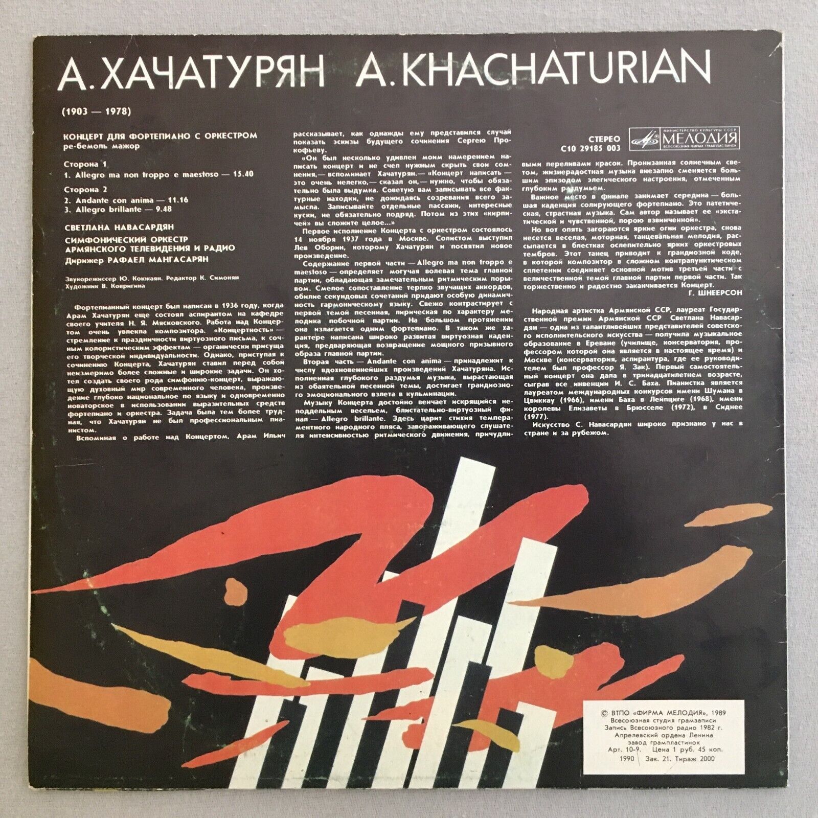V048 Khachaturian Piano Concerto Navasardyan Melodiya C10 29185 003 Stereo