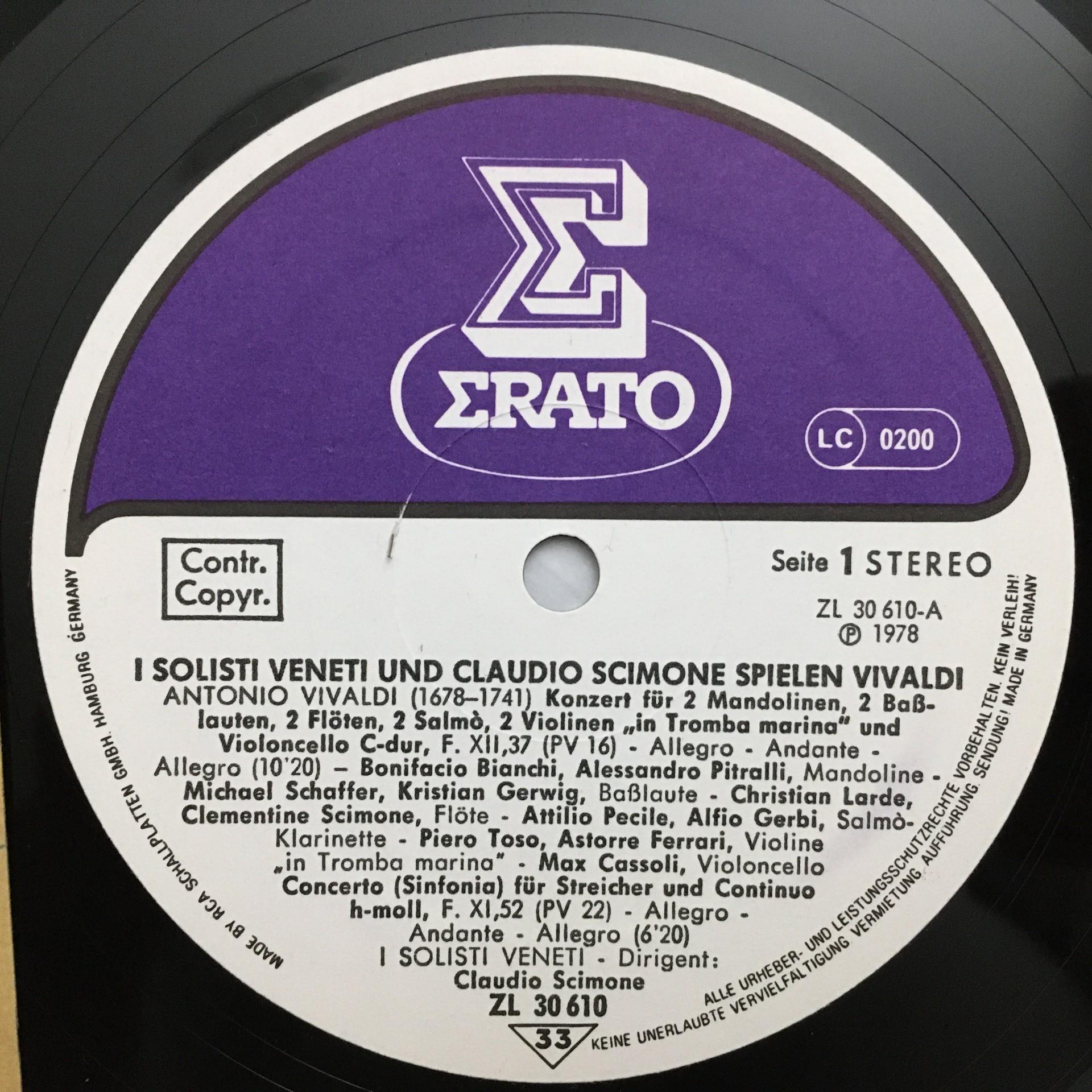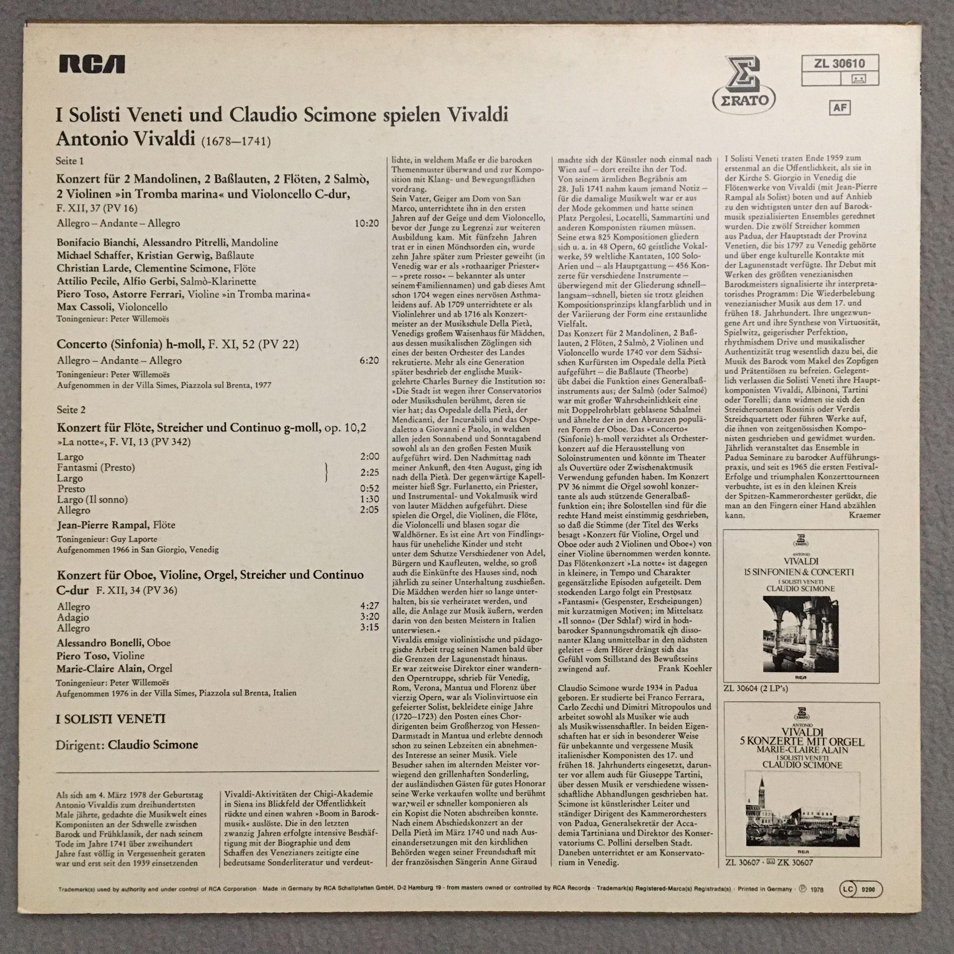 O889 Vivaldi Concertos Rampal Alain Scimone I Solisti Veneti Erato ZL 30610 Ster