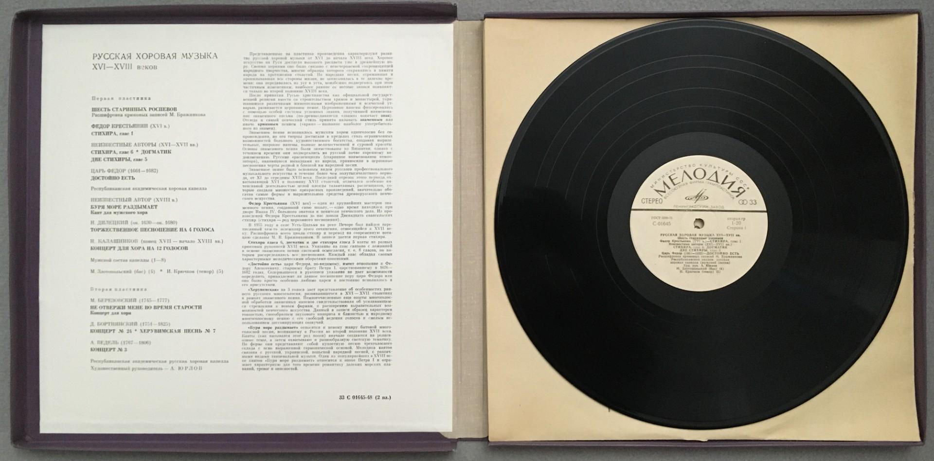 D869 Russian Choral Music 16-18 Centuries Yurlov 2LP Melodiya C 01645-48 Stereo