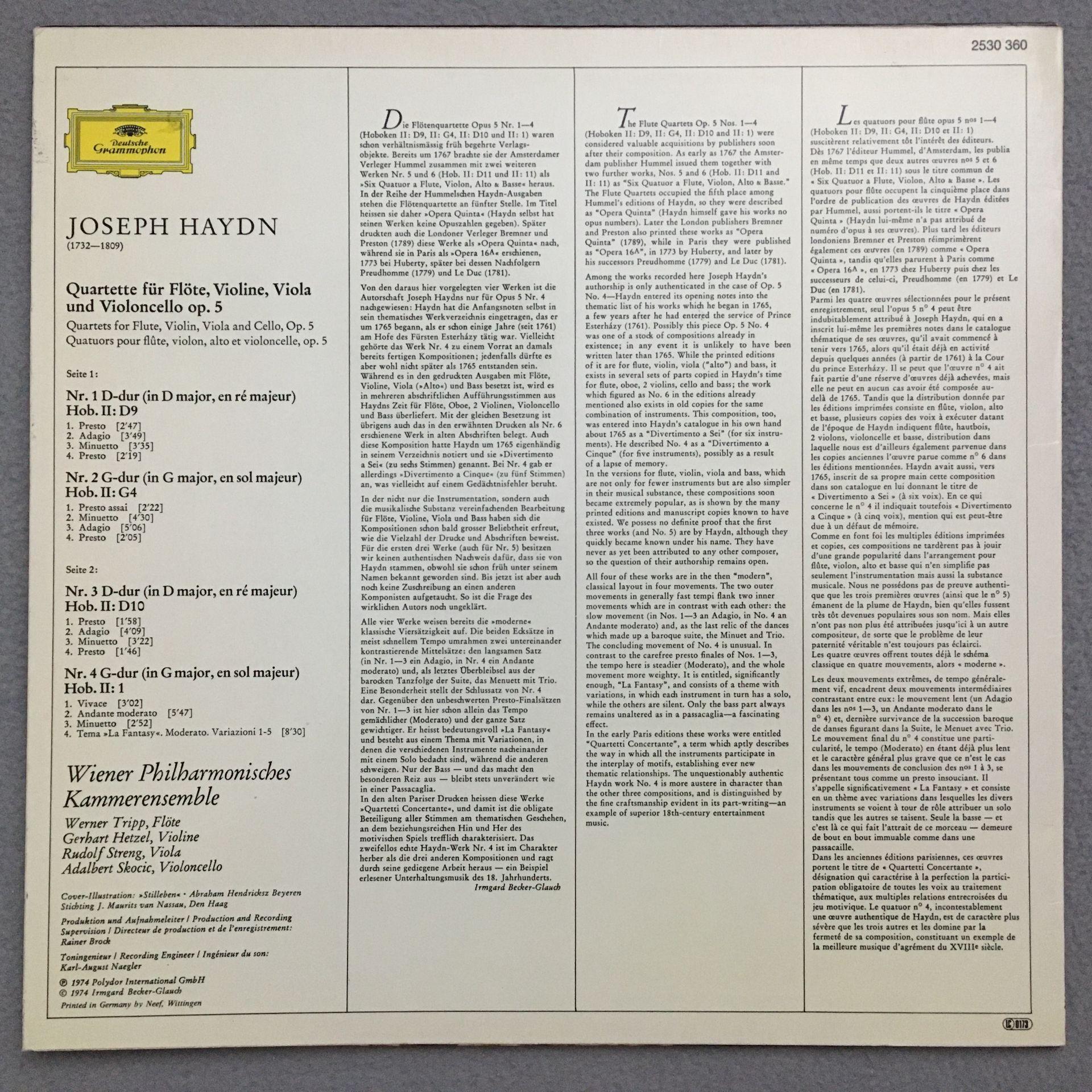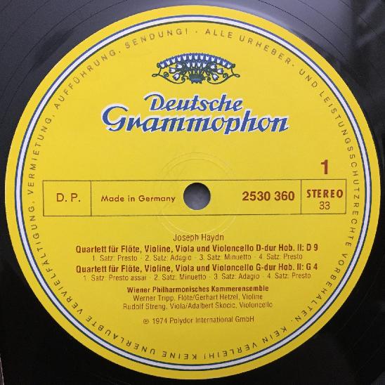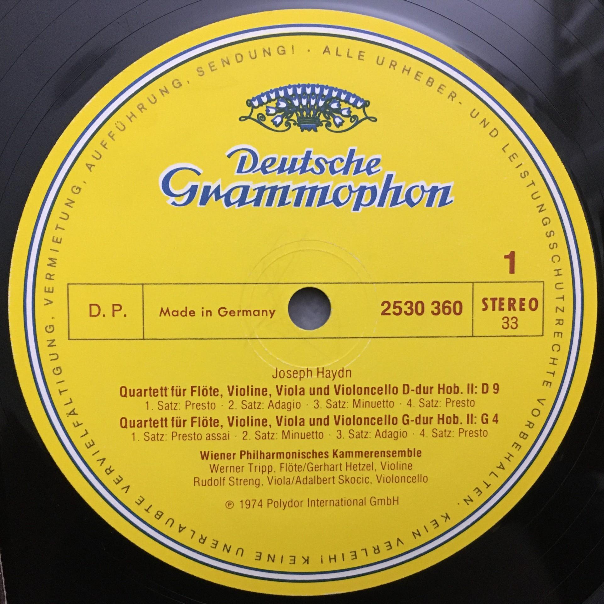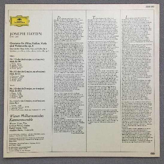 O903 Haydn Flute Quartets Chamber Ensemble VPO DGG 2530 360 Stereo