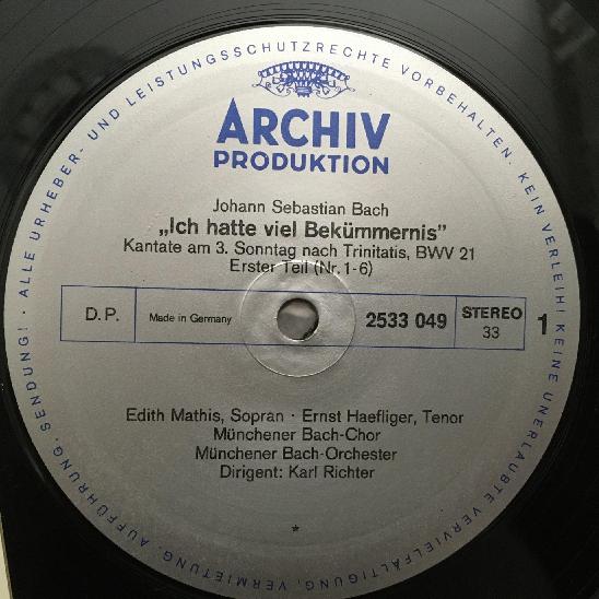 O910 Bach Cantatas Fischer-Dieskau Mathis Richter DGG Archiv 2533 049 Stereo