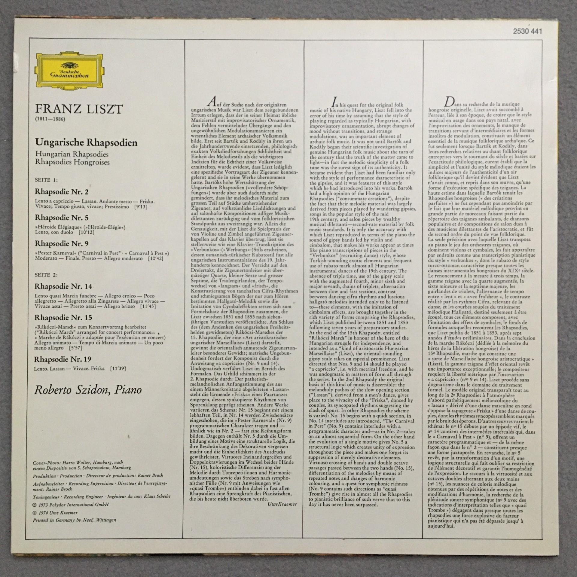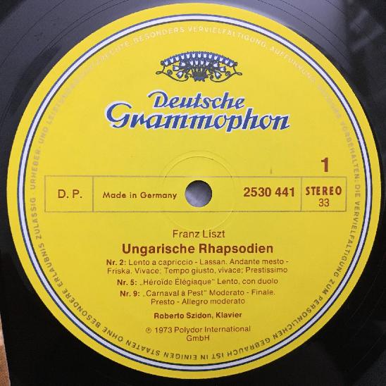 O914 Liszt Hungarian Rhapsodies Szidon Piano DGG 2530 441 Stereo