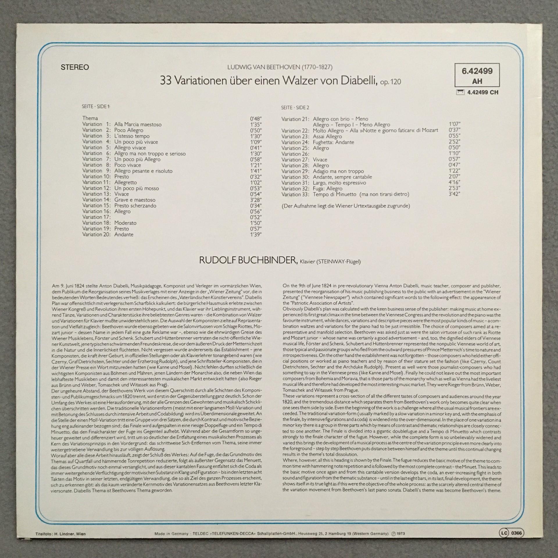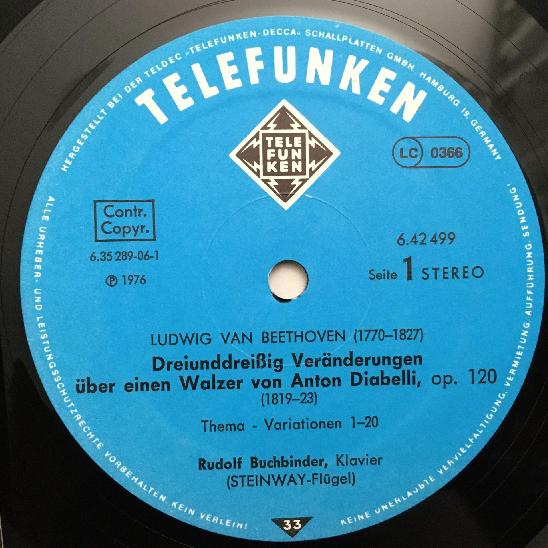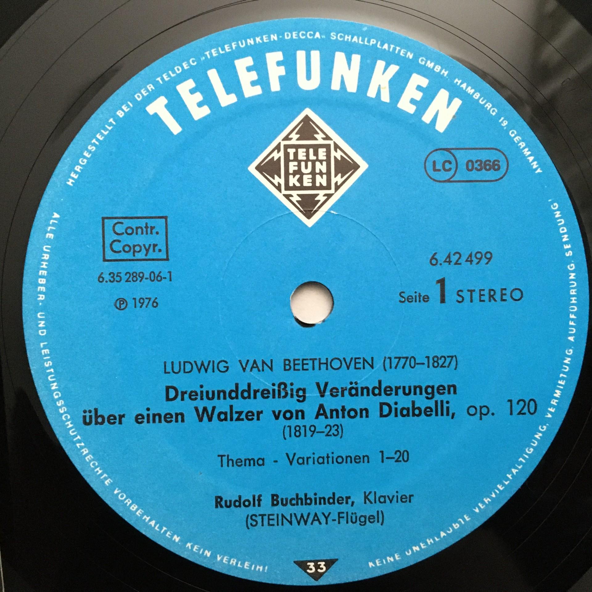 O920 Beethoven Diabelli Variations Buchbinder Piano Telefunken 6.42499 AH Stereo