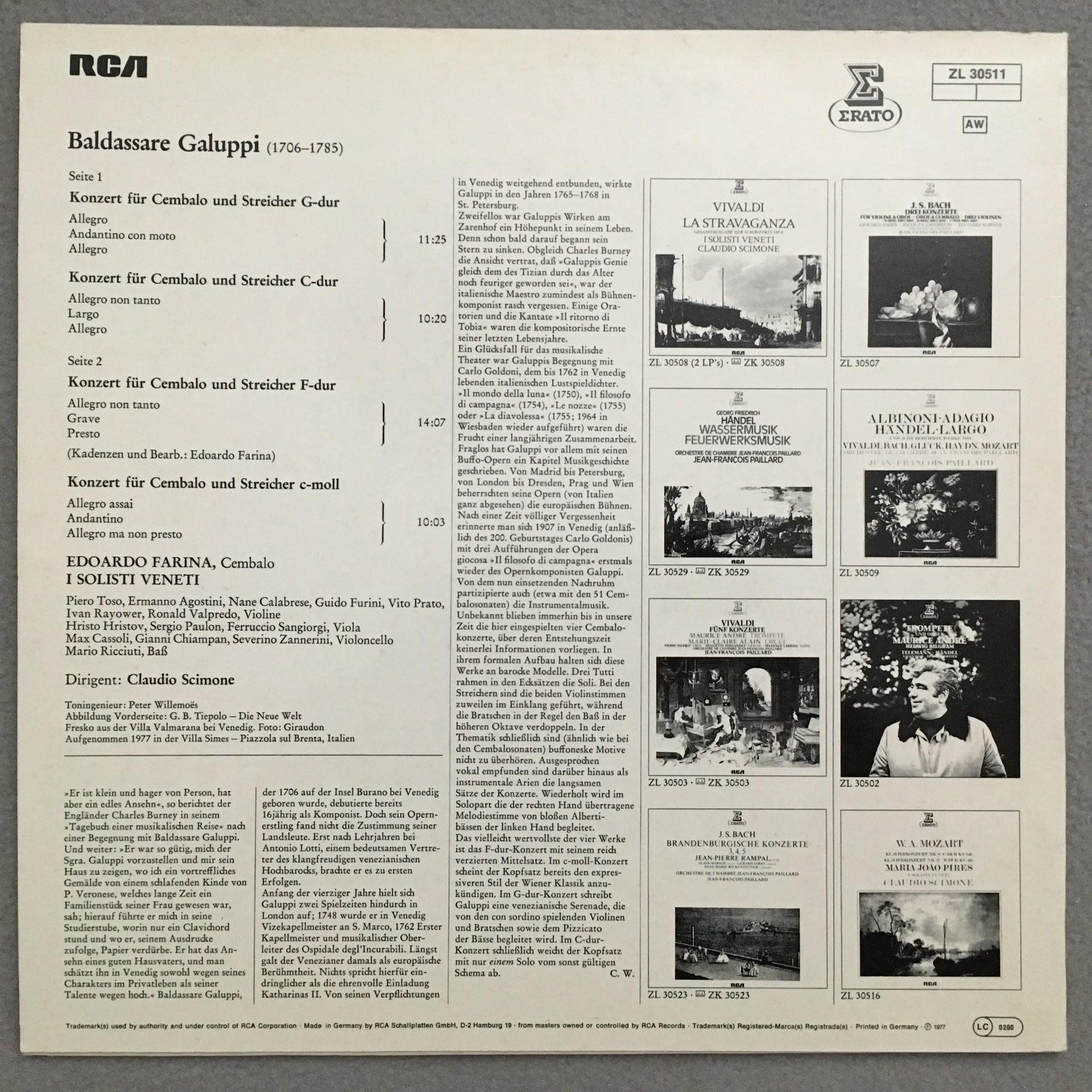 O924 Galuppi Harpsichord Concertos Farina Scimone Erato ZL 30511 Stereo
