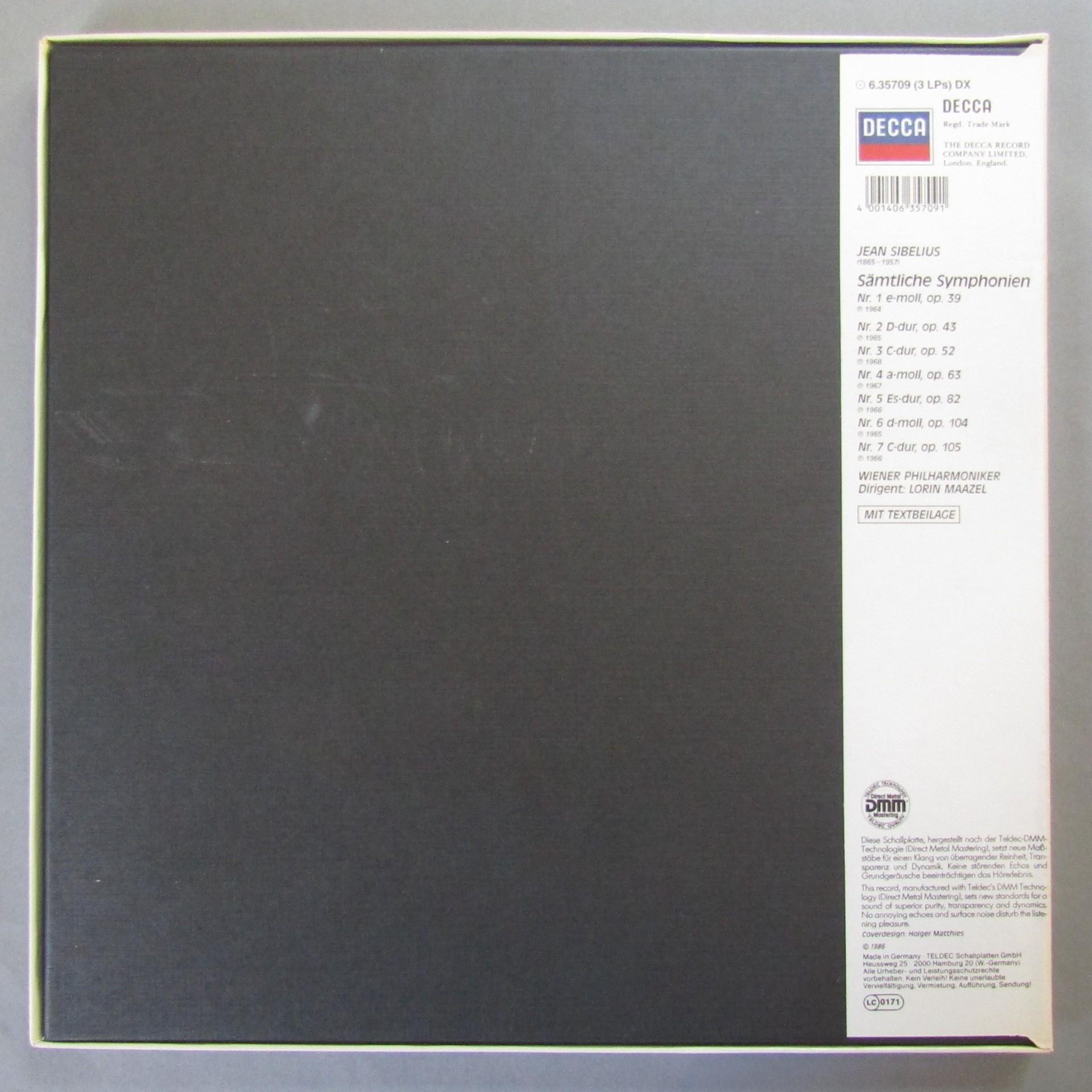 B472 Sibelius Complete Symphonies Maazel VPO 3LP DECCA 6.35709 DX Digital Stereo