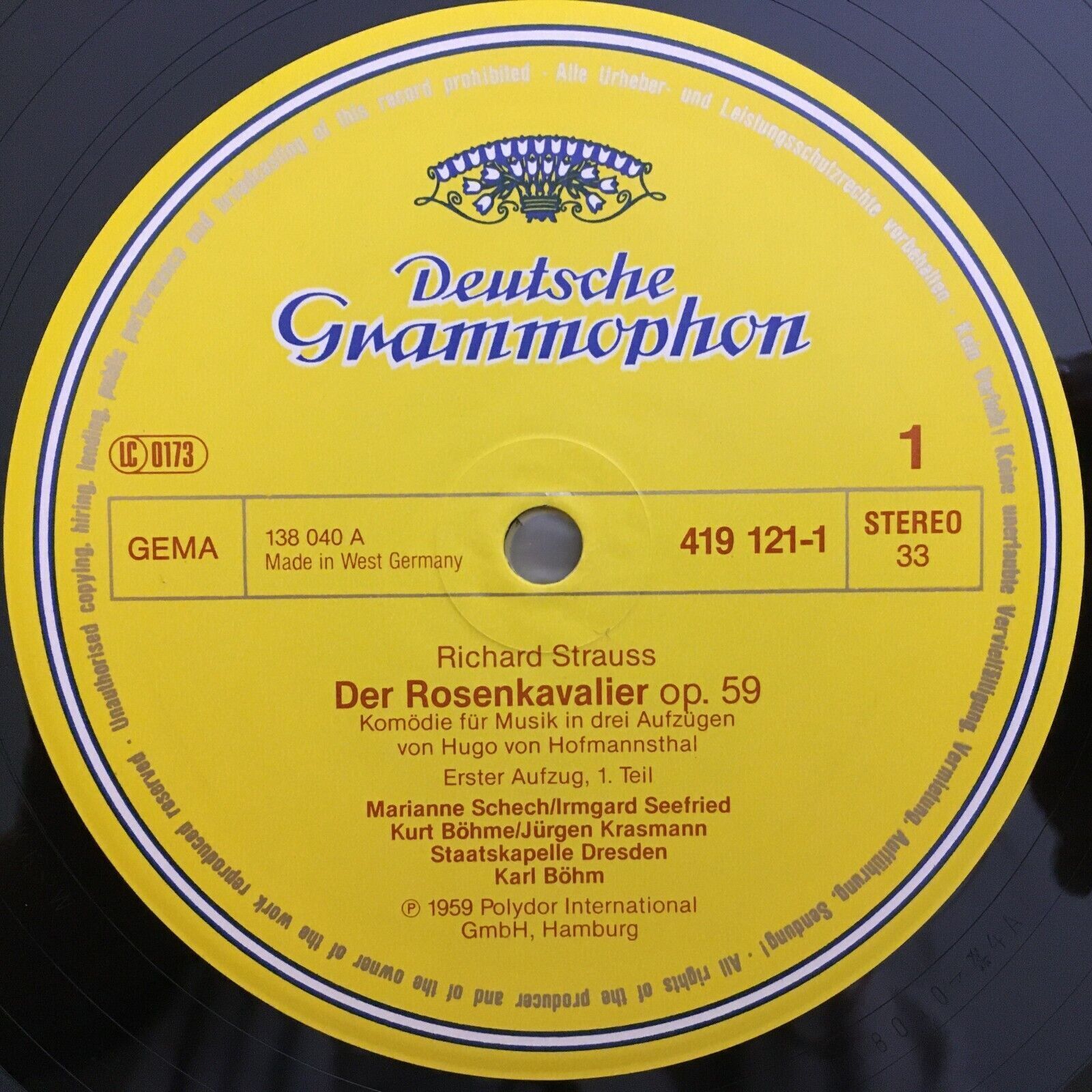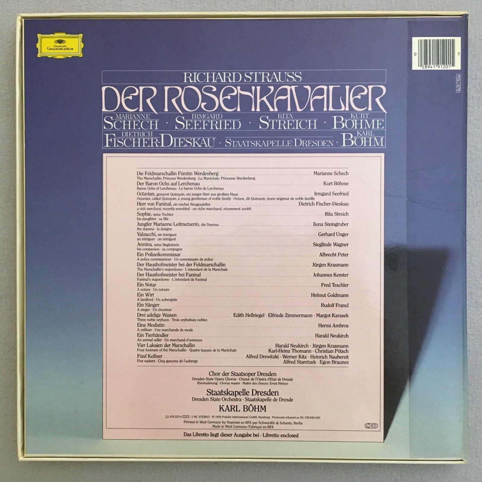 B473 R. Strauss Rosenkavalier Fischer-Dieskau Bohm VPO 4LP DGG 419 120-1 Stereo