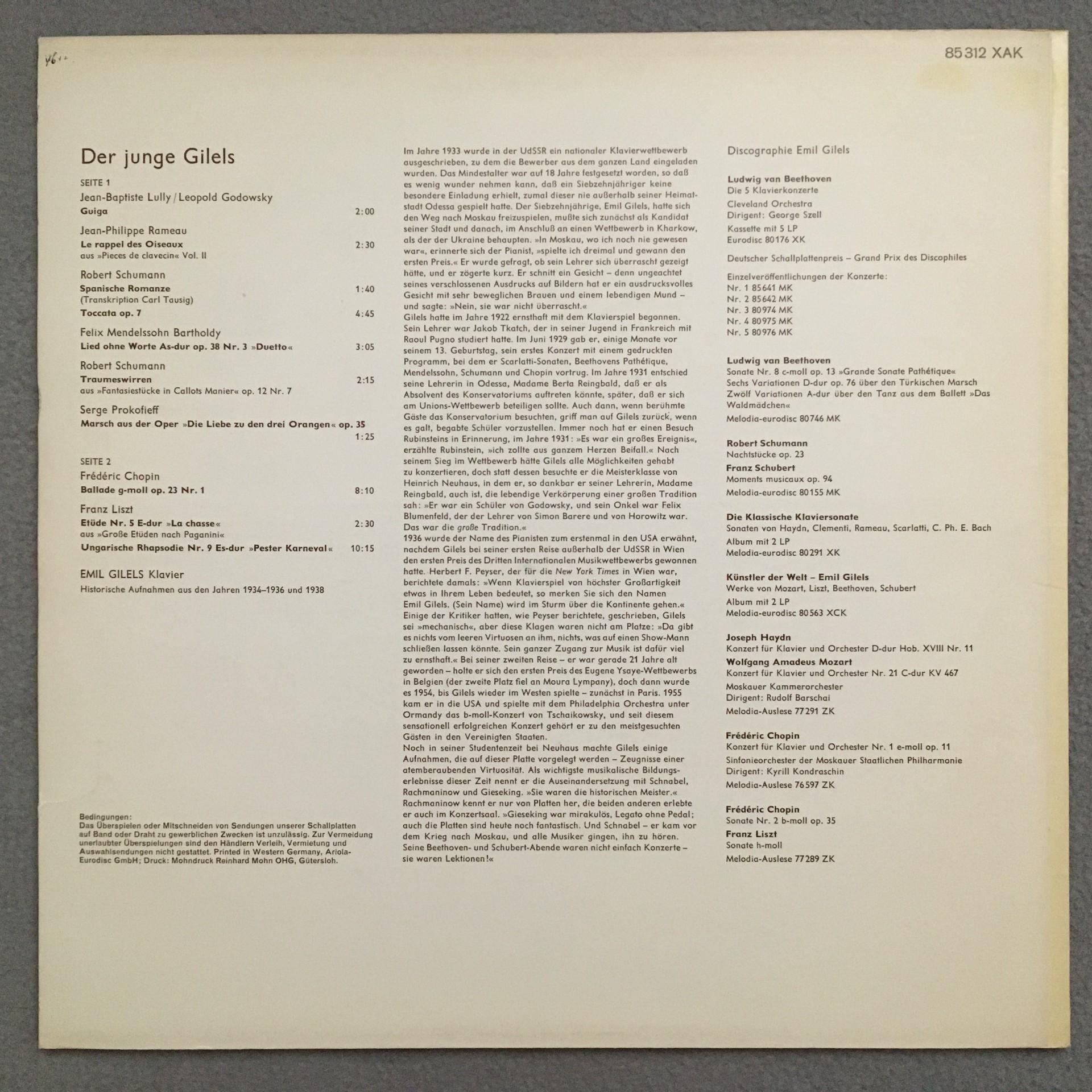 O948 The Young Gilels Works from Lully Rameau Chopin Melodiya 85 312 XAK Stereo