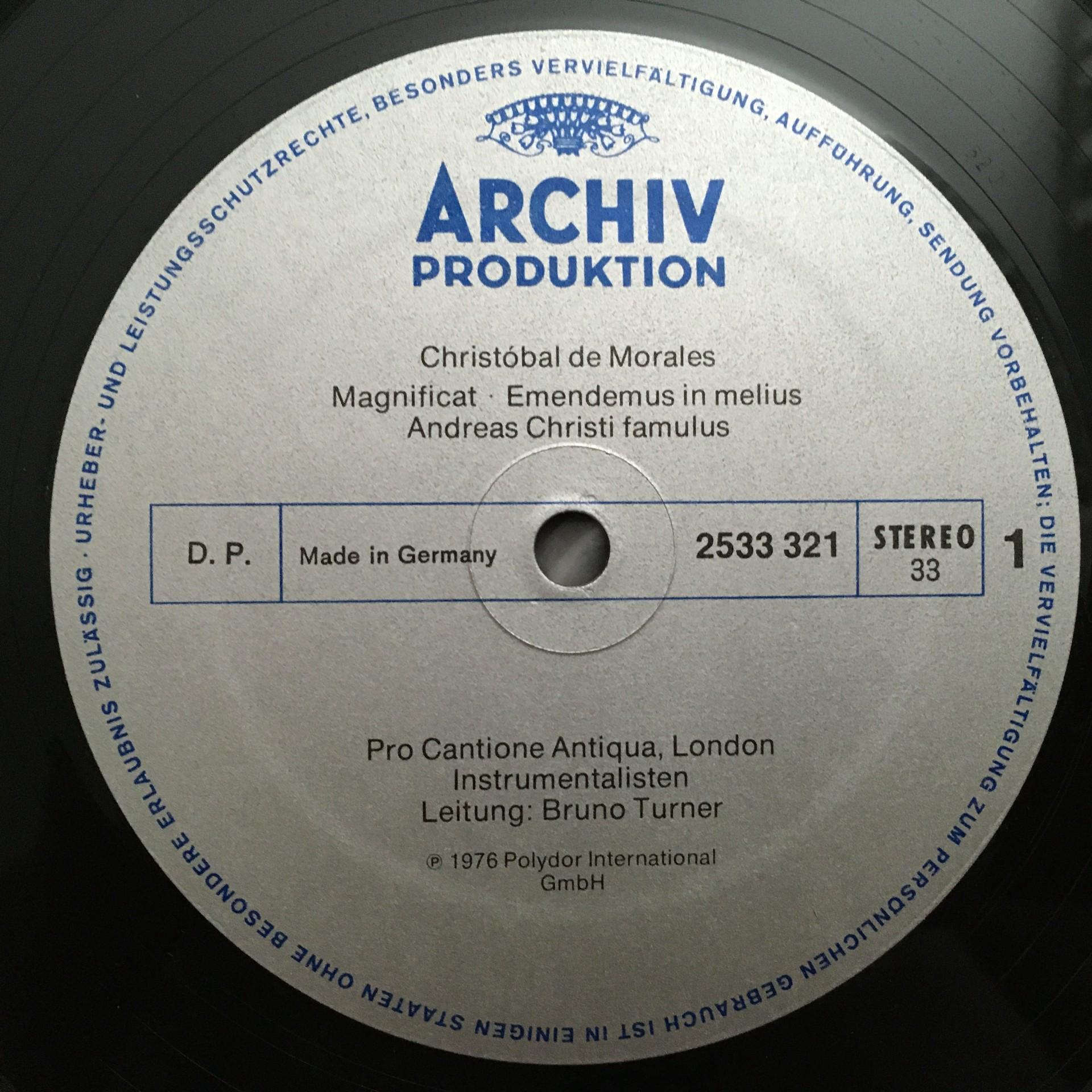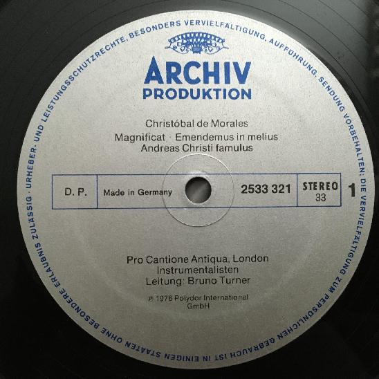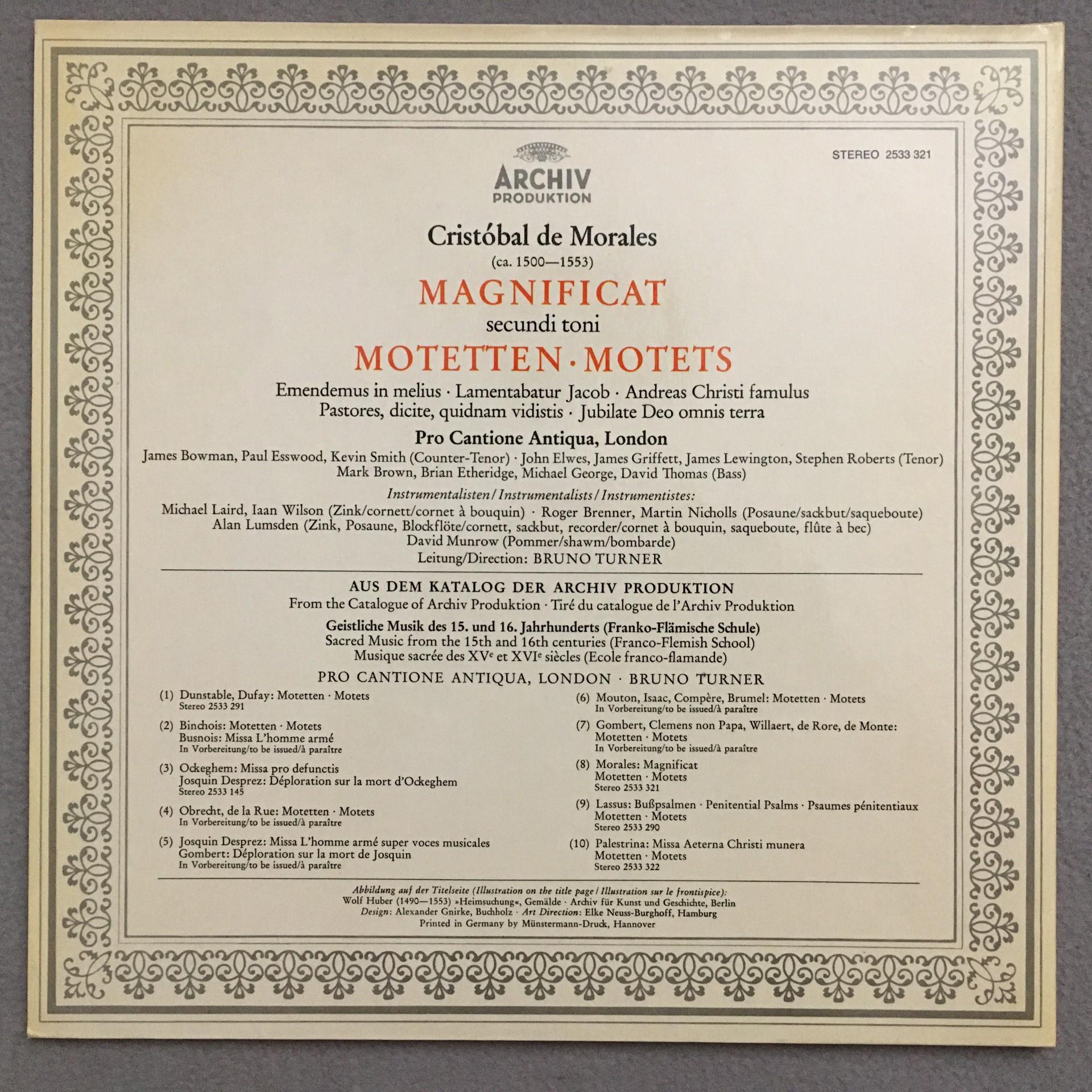 O958 de Morales Magnificat Motets Turner DGG Archiv 2533 321 Stereo