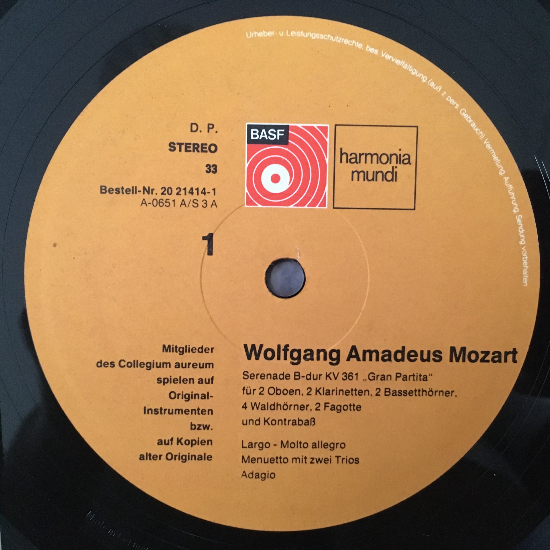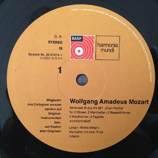P531 Mozart Serenade Members Collegium Aureum Harmonia Mundi 20 21414-1 Stereo