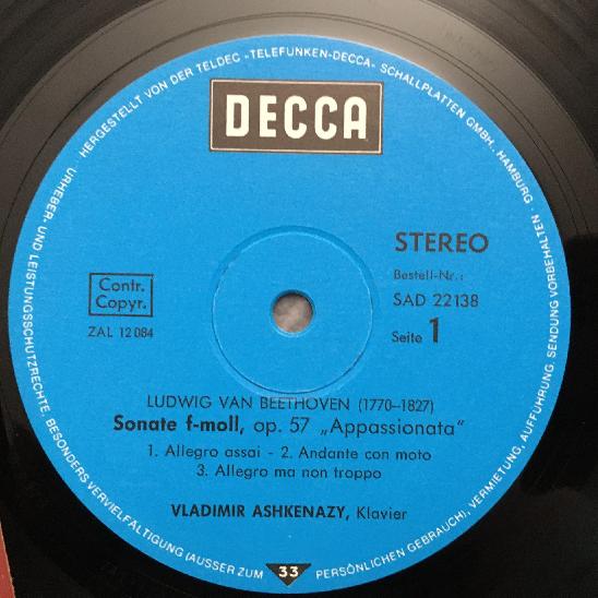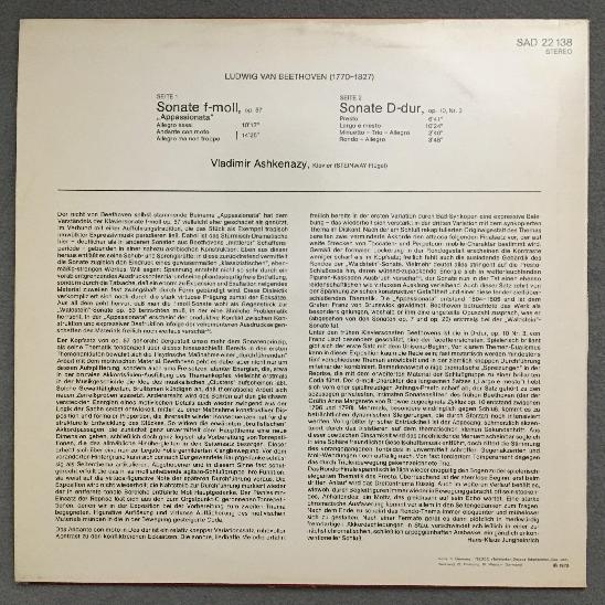 O965 Beethoven Sonatas Askenazy DECCA SAD 22 138 Stereo