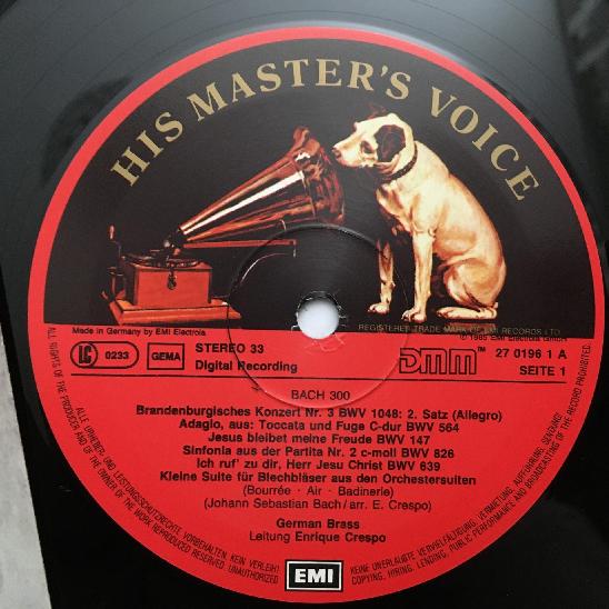 O970 Bach 300 German Brass Brandenburg Concerto EMI 067 27 0196 1 Digital Stereo