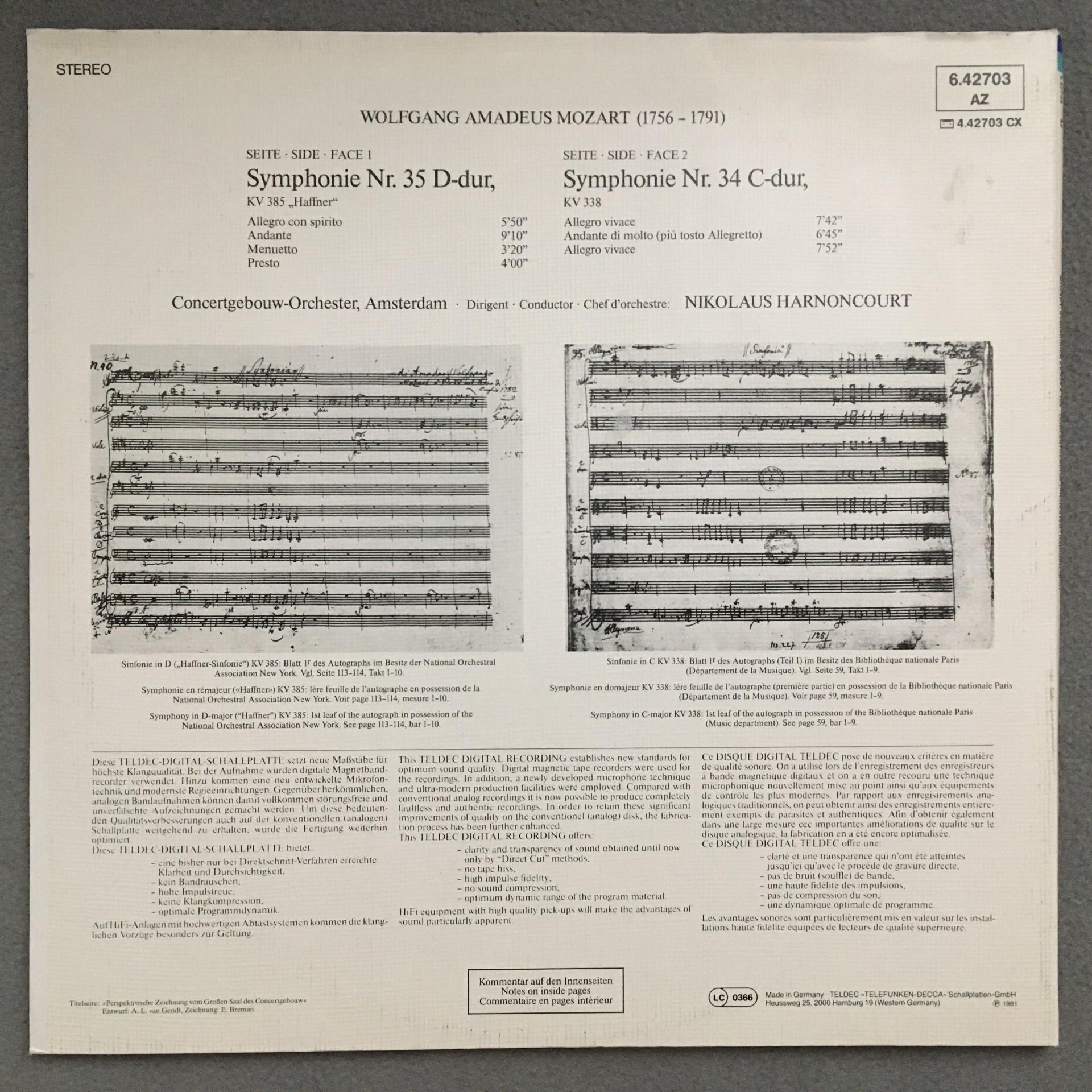 O981 Mozart Symphonies Harnoncourt Telefunken 6.42703 AZ Digital Stereo