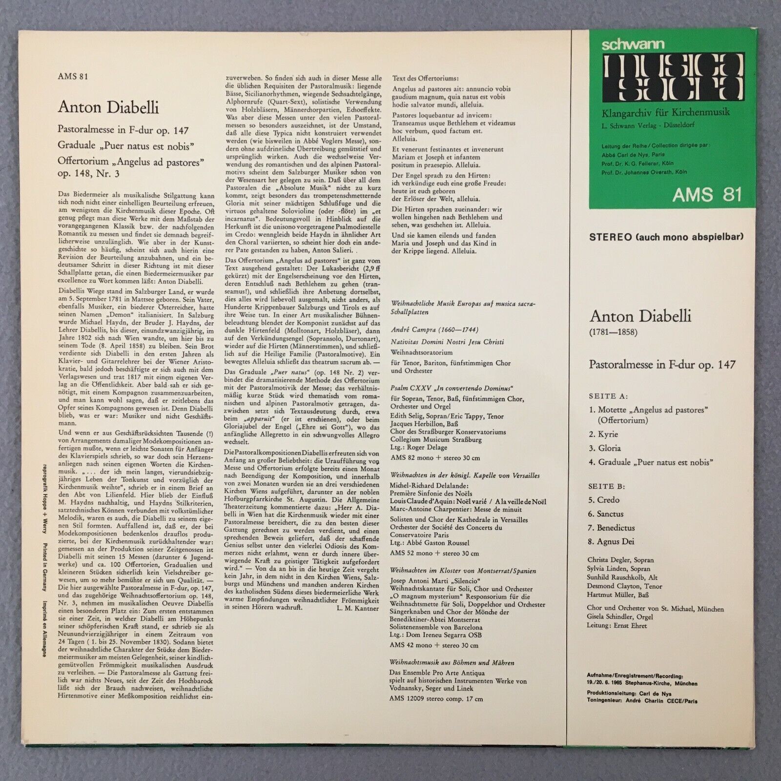 R192 Diabelli Pastoral Mass Degler Schindler Organ Musica Sacra AMS 81 Stereo