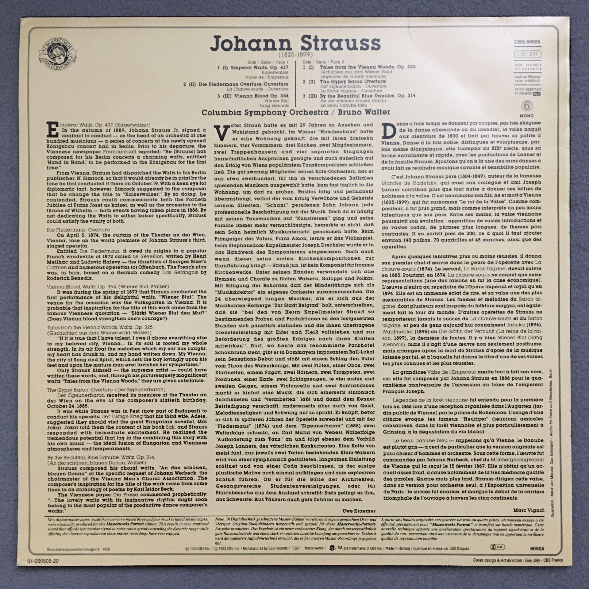 O985 J. Strauss Waltz Overtures Walter CBS Masterworks CBS 60505