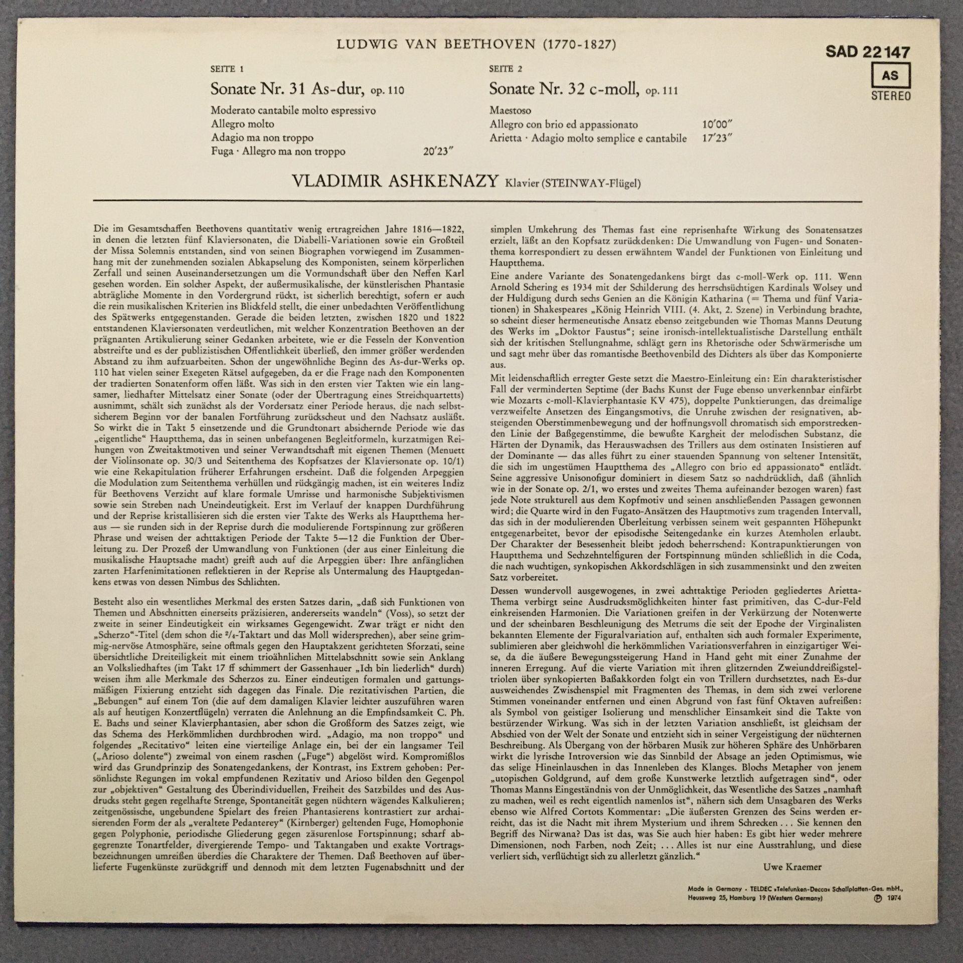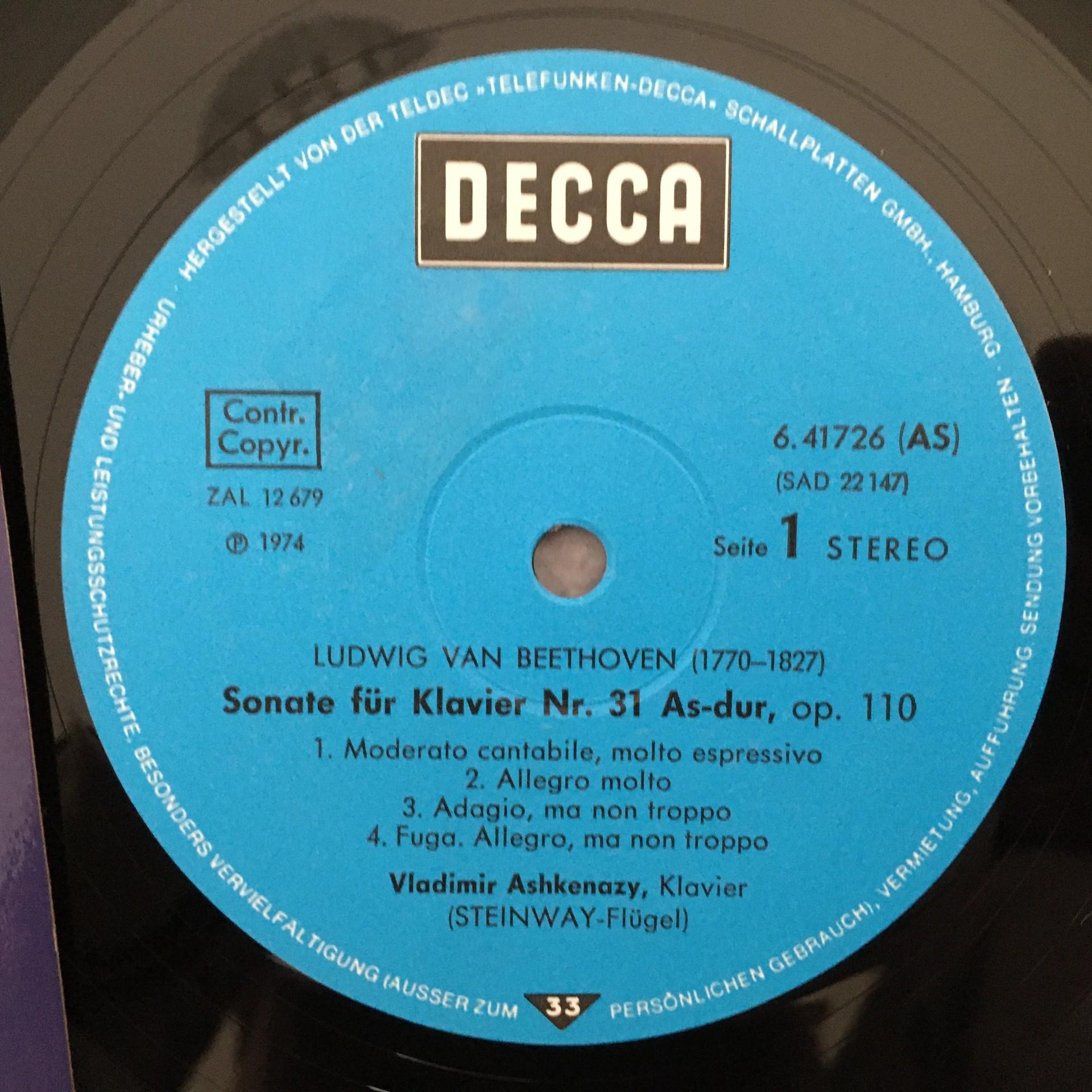 P536 Beethoven Sonatas Askenazy Piano DECCA SAD 22 147 Stereo