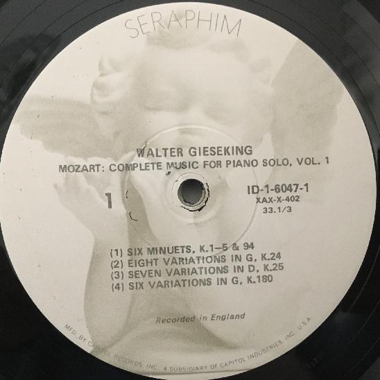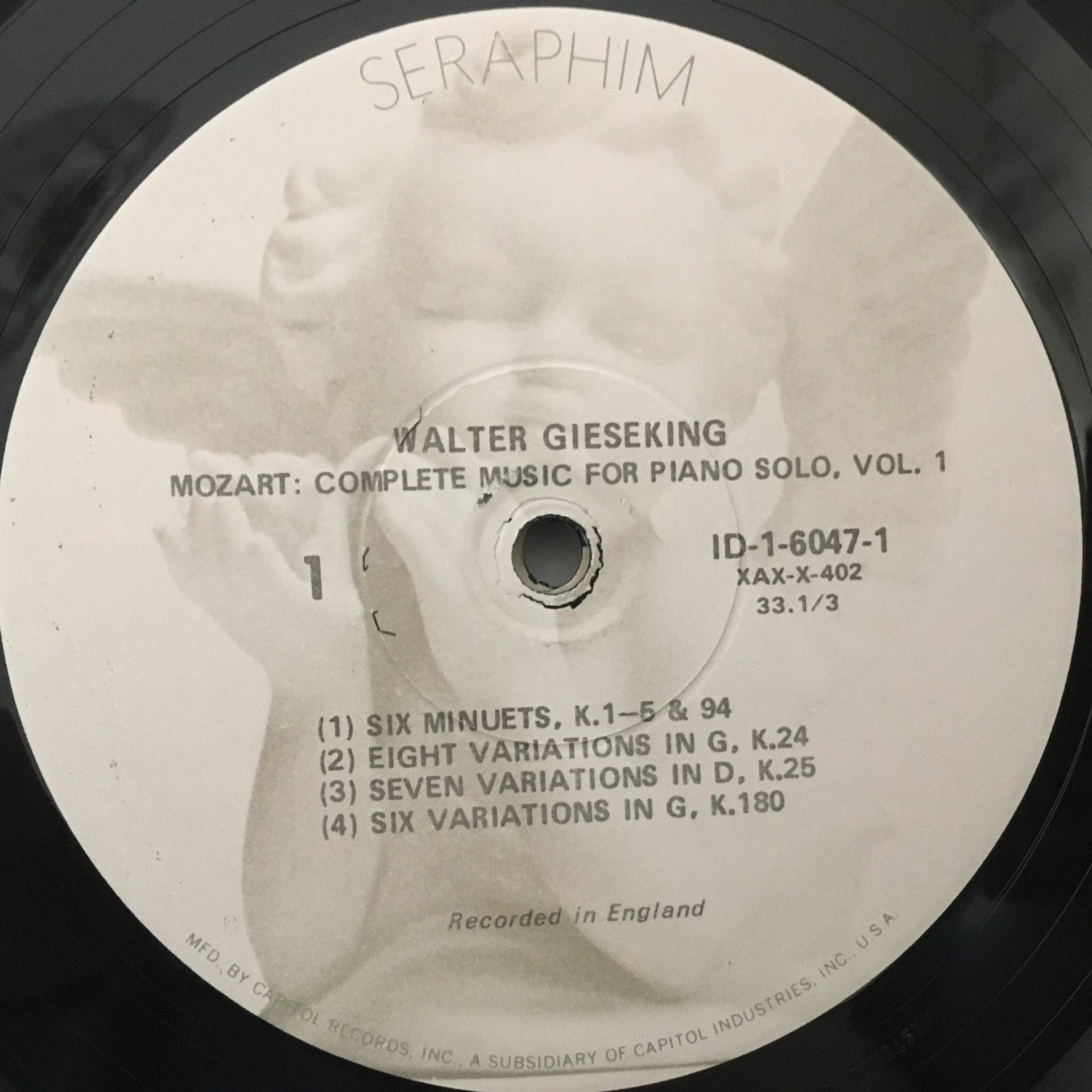 D874 Mozart Complete Music for Piano Solo Vol.I Gieseking 4LP Seraphim ID-6047