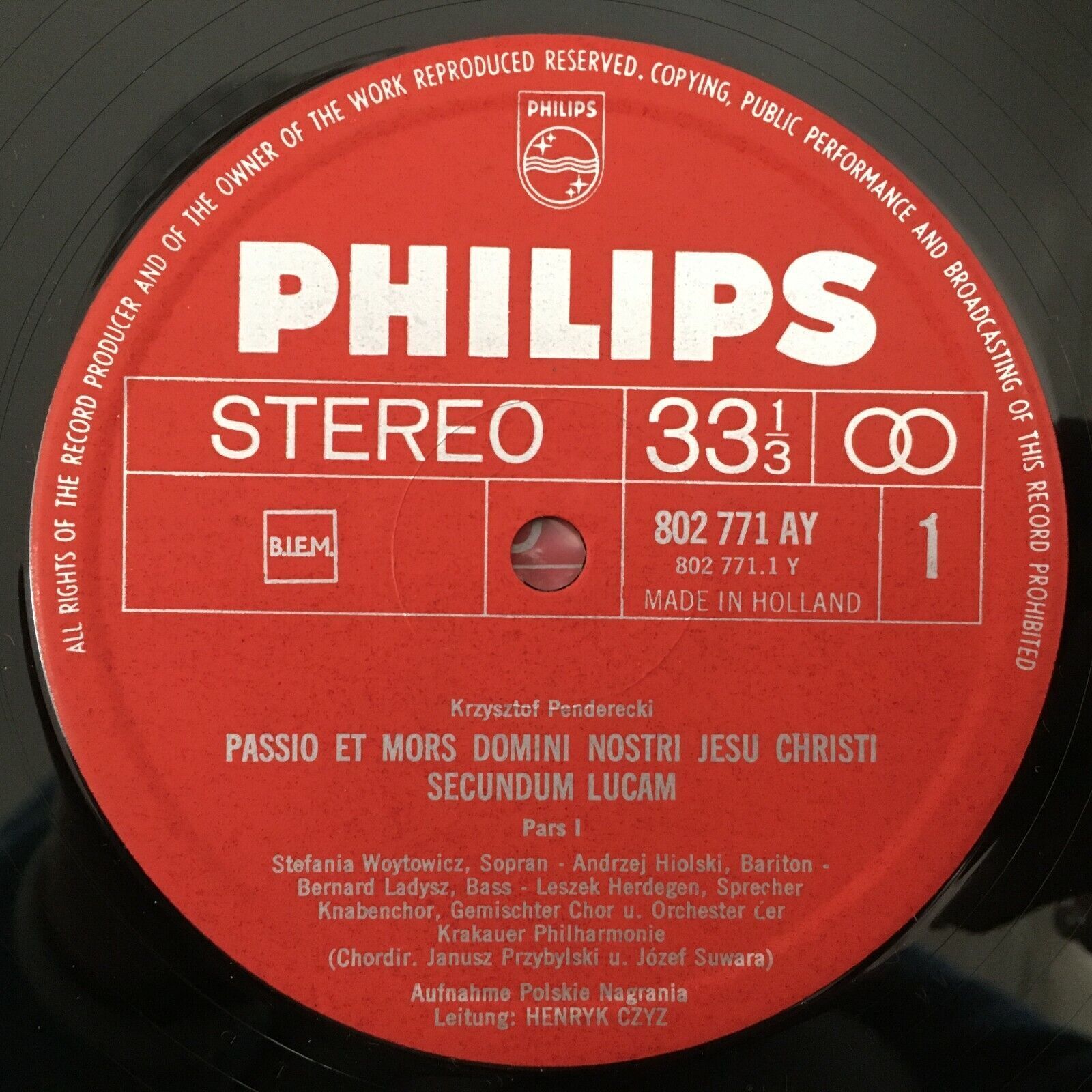 B949 Penderecki Passio Secundum Lucam 2LP Philips 802 771/72 AY Stereo