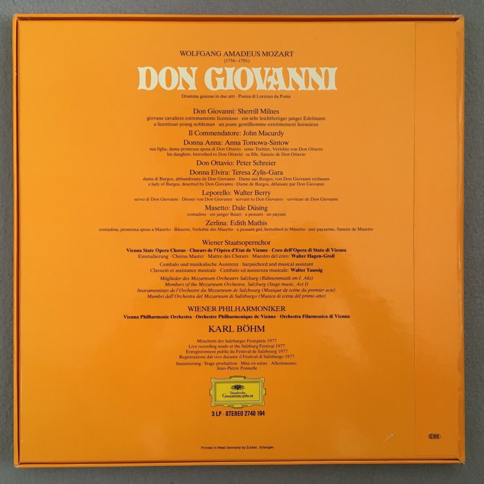 B919 Mozart Don Giovanni Milnes Mathis Schreier Bohm VPO 3LP DGG 2740 194 Stereo
