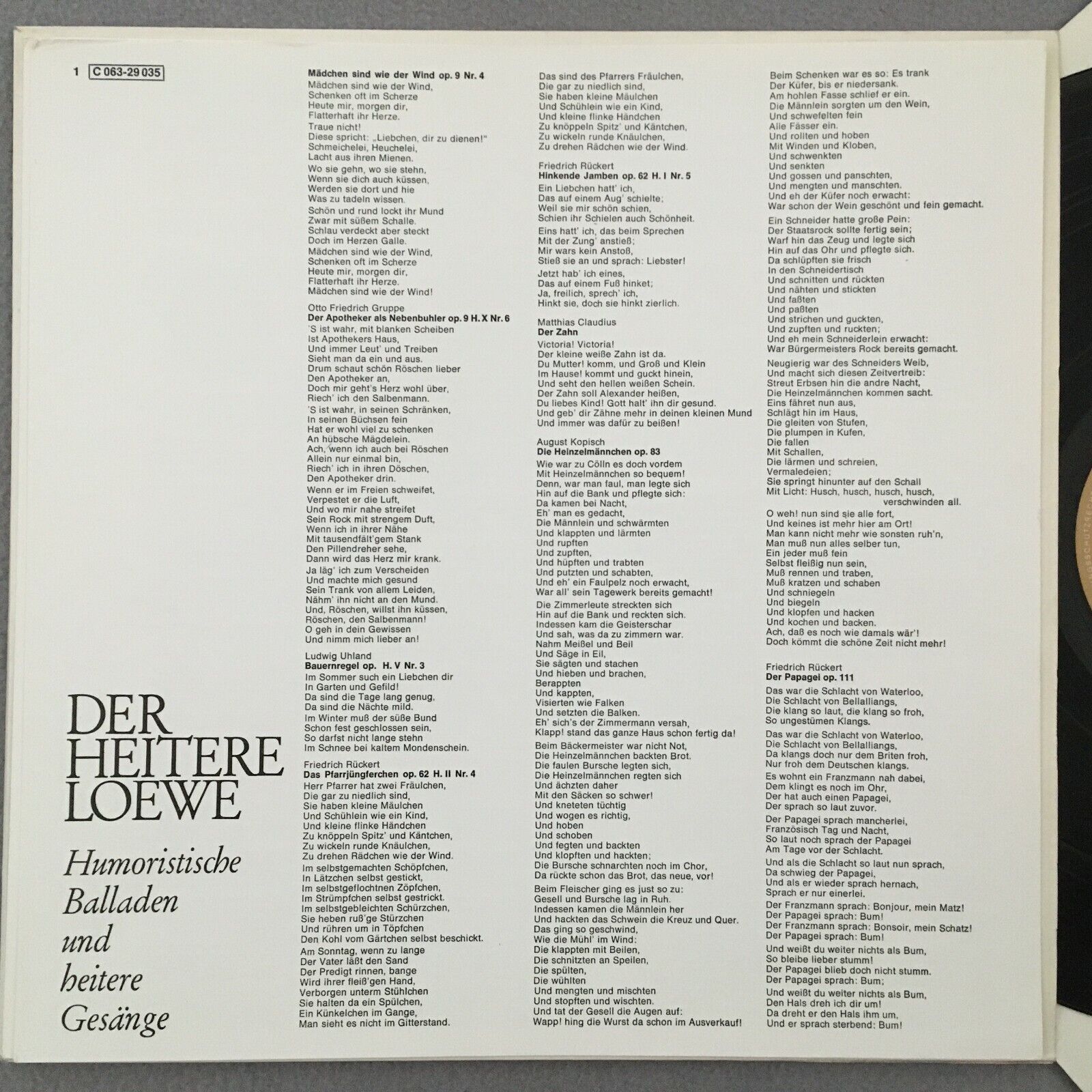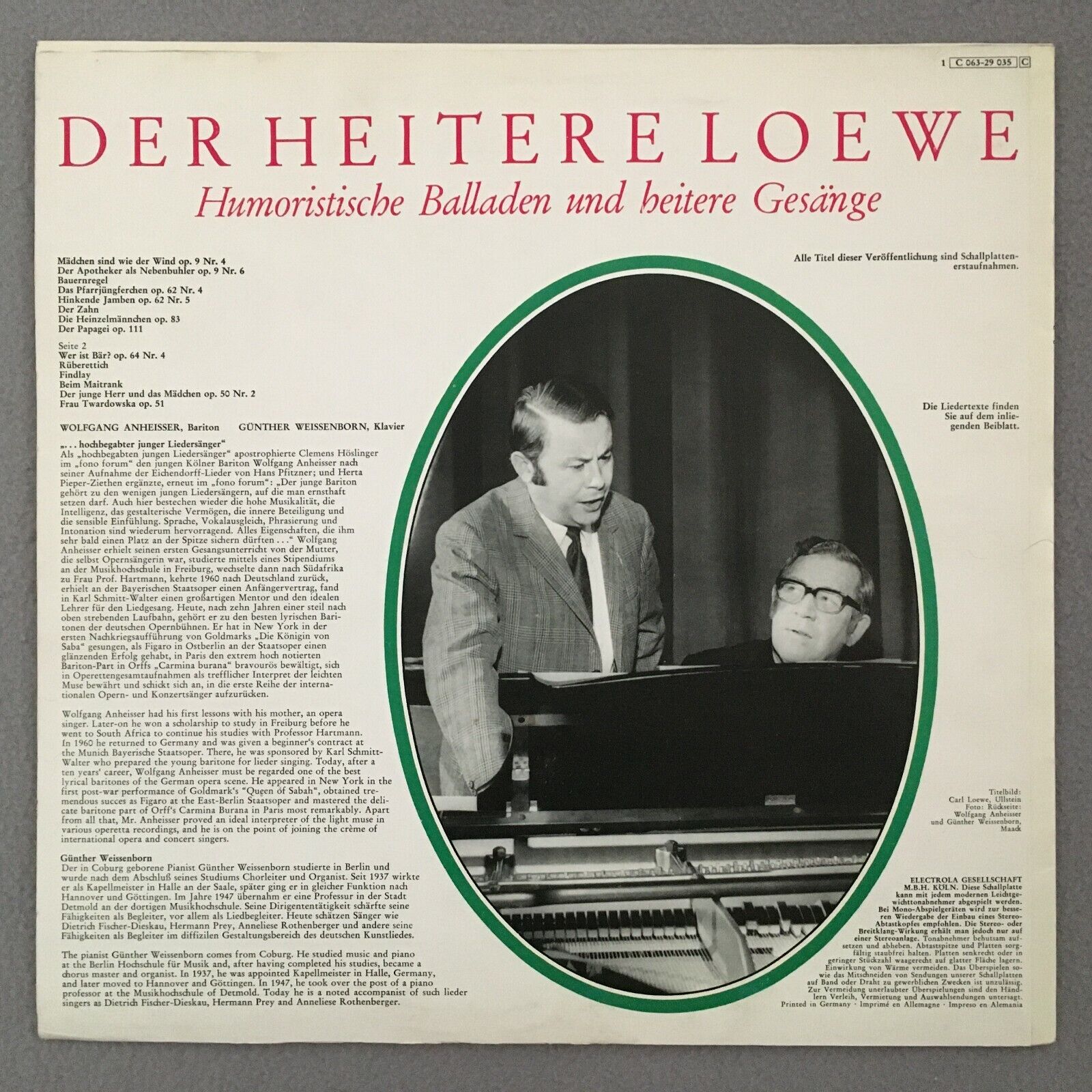 R177 The Funny Loewe Ballades Songs Anheisser Weissenborn EMI 1 C 063-29 035 St