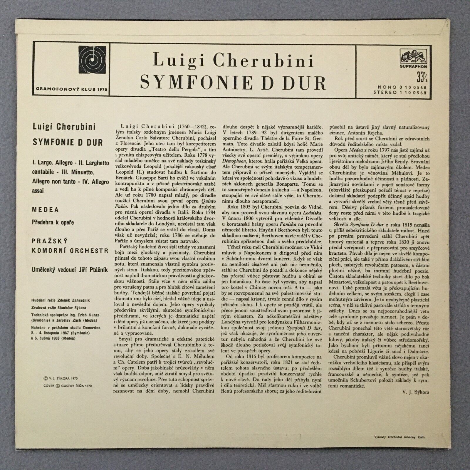 R176 Cherubini Symphony Medea Ptacnik Supraphon 1 10 0568 Stereo