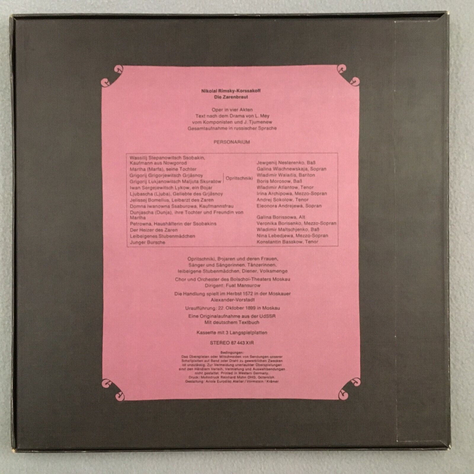 B945 Rimsky-Korssakoff Zarenbraut Mansurow 3LP Eurodisc 87 443 XIR Stereo