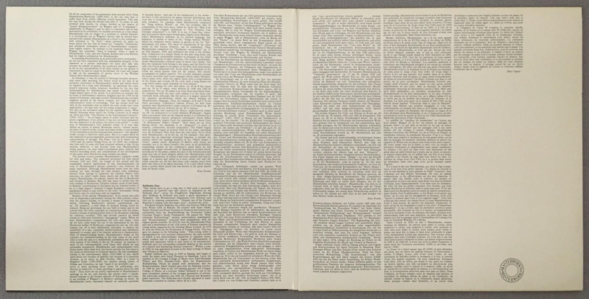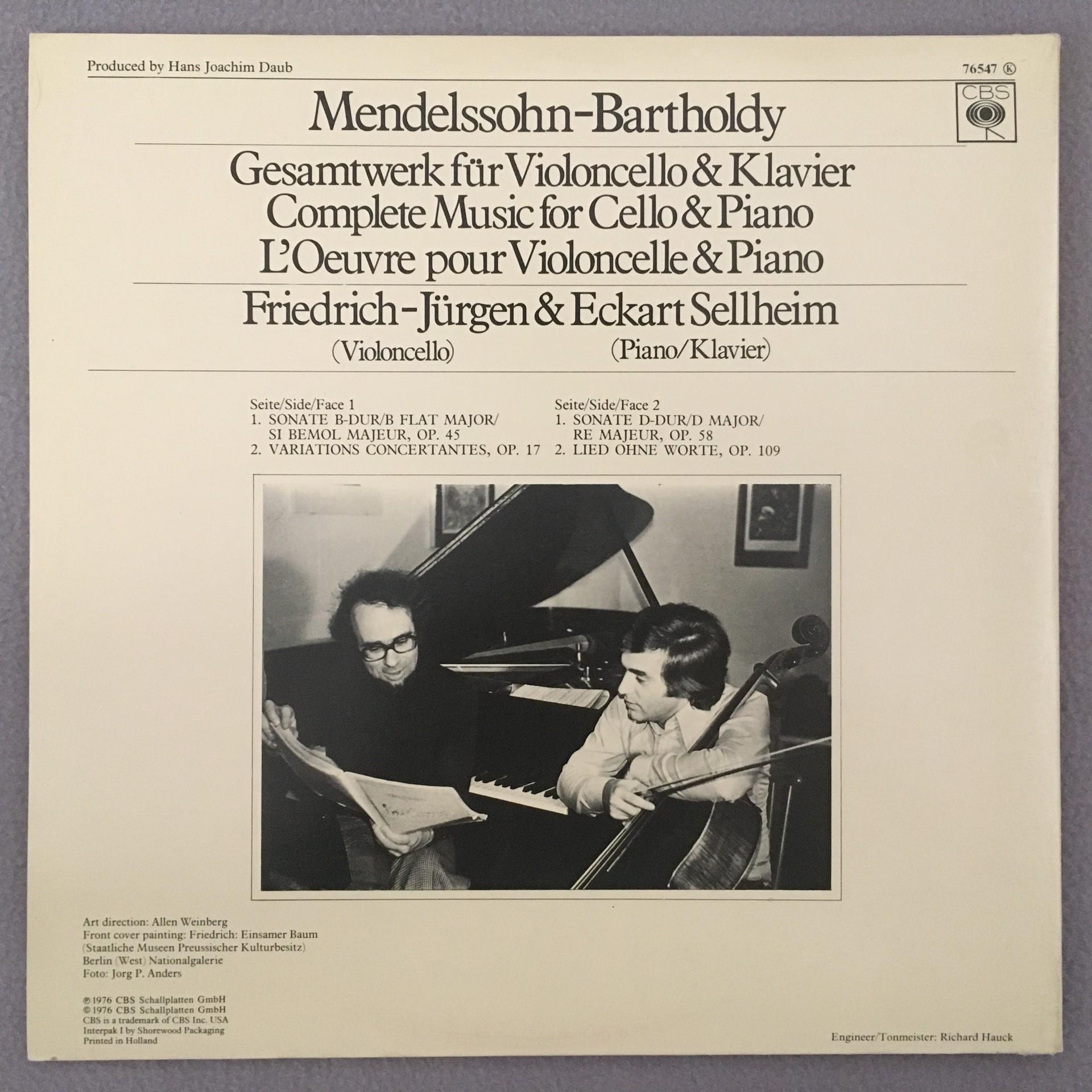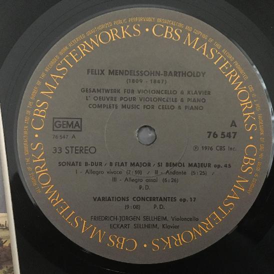 P542 Mendelssohn Music for Violin & Piano F.-J. & E. Sellheim CBS 76 549 Stereo