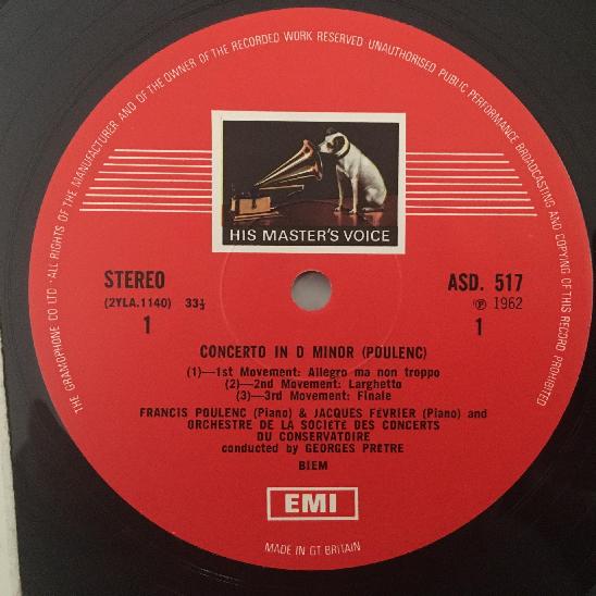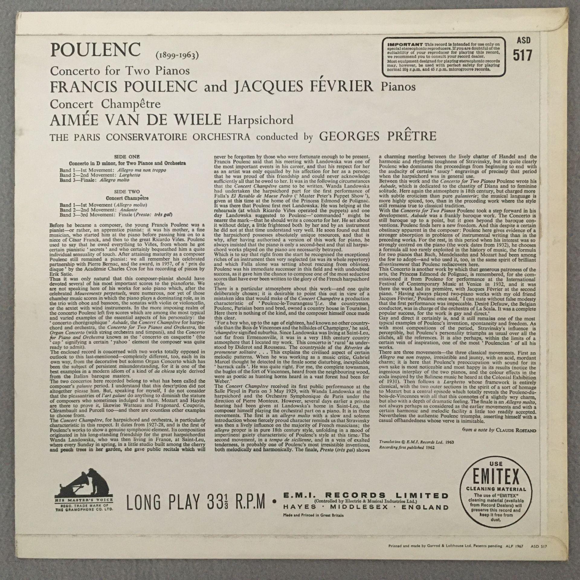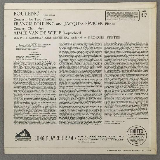 P546 Poulenc Concerto for 2 Pianos Fevrier De Wiele Pretre EMI HMV ASD 517 Ster