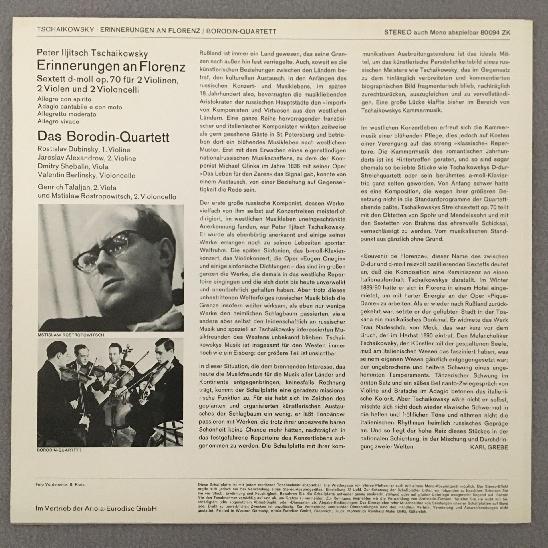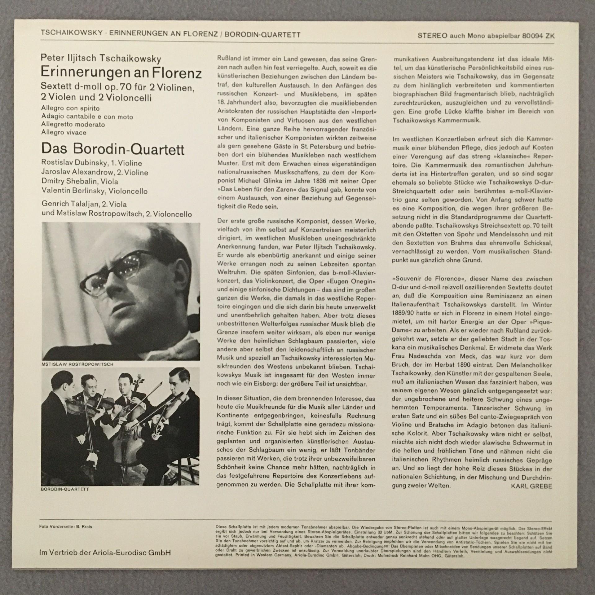 P554 Tchaikovsky Memories Sextet Rostropovich Borodin Melodiya 80 094 ZK Stereo