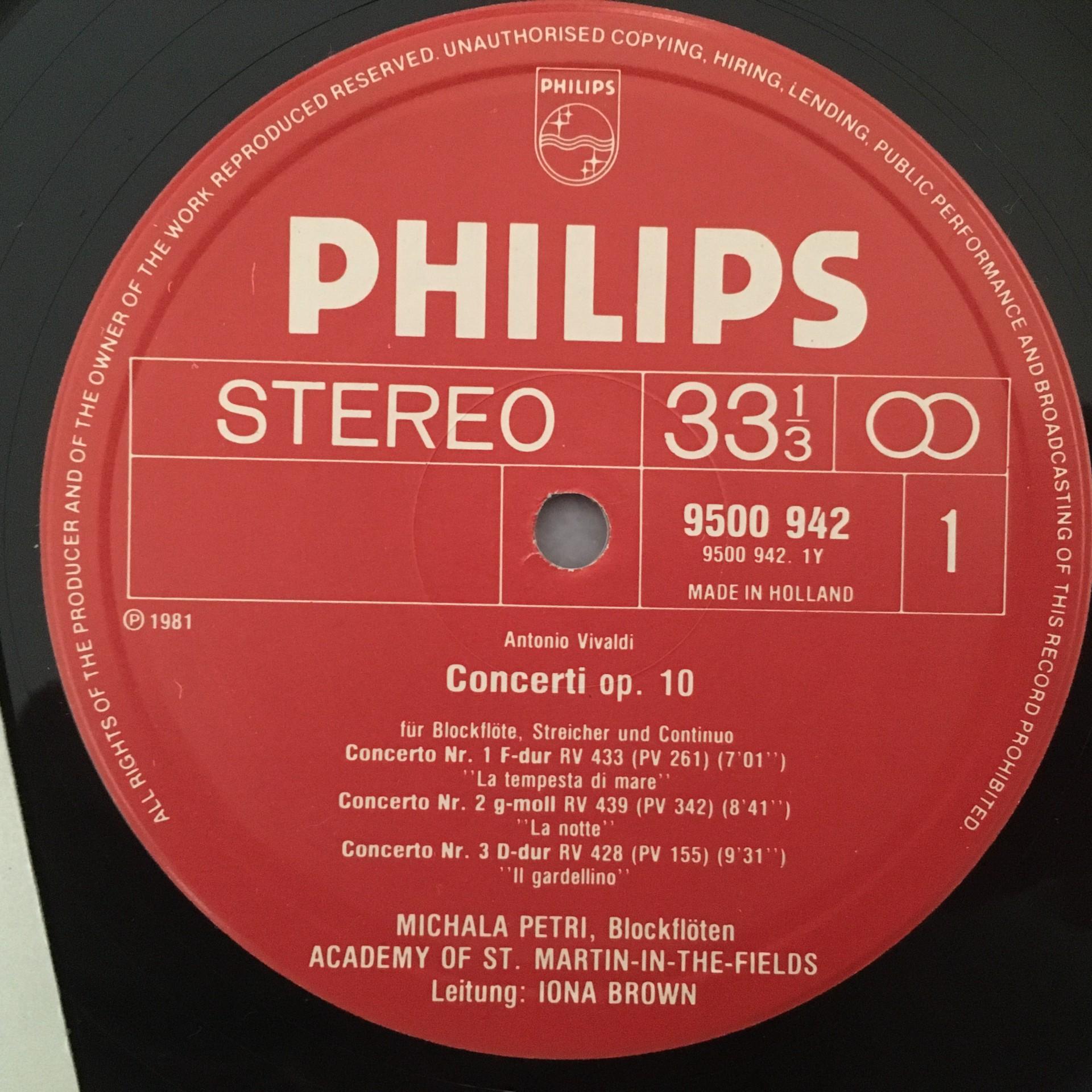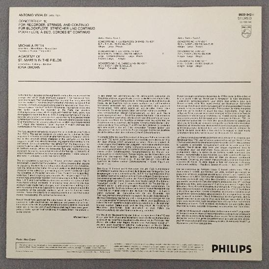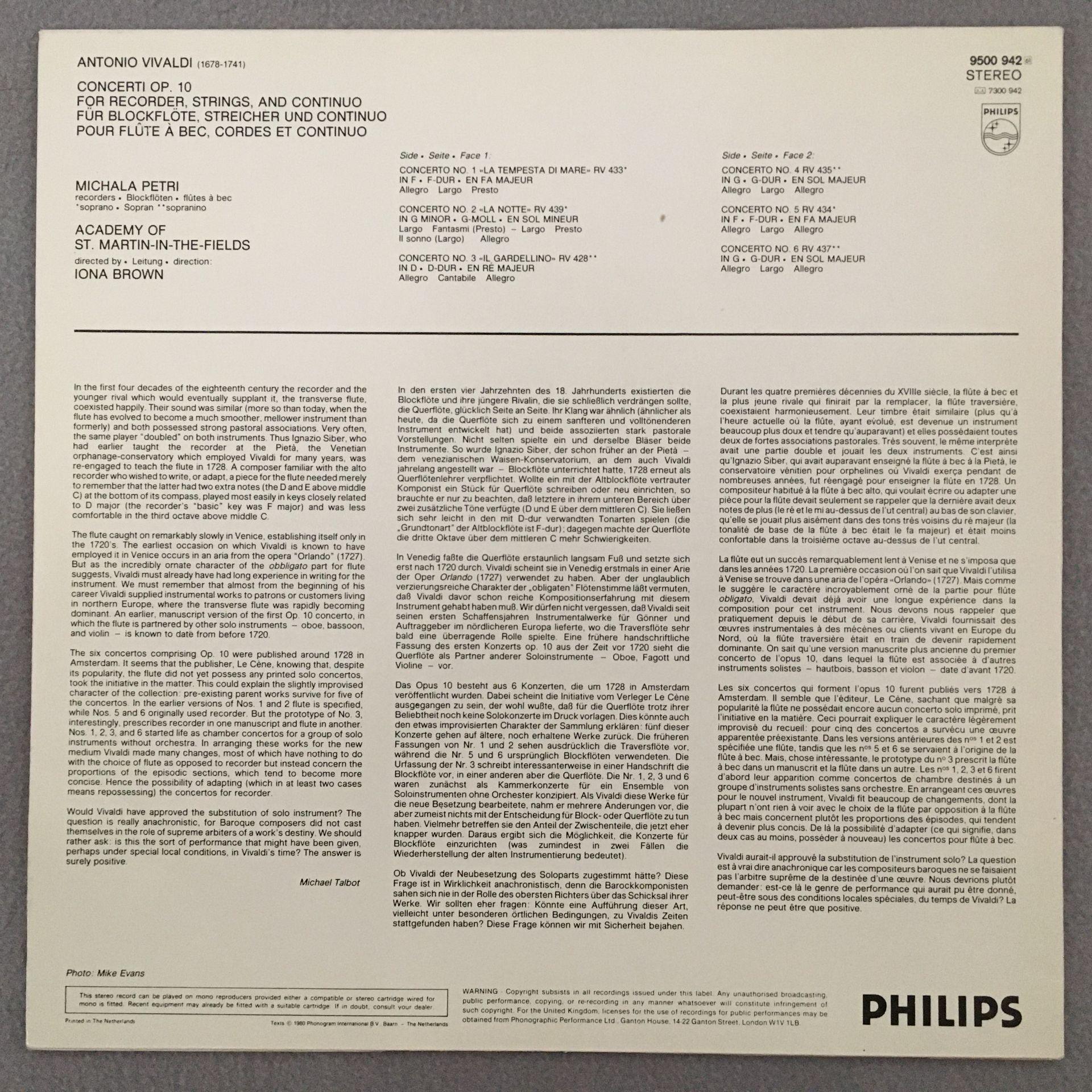 P555 Vivaldi 6 Flute Concertos Petri Recorder Brown Philips 9500 942 Stereo