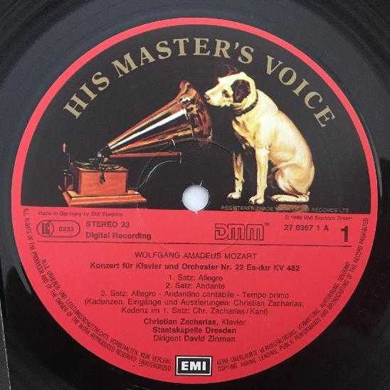P562 Mozart Piano Sonatas Zacharias Zinman EMI 067 27 0367 1 Digital Stereo