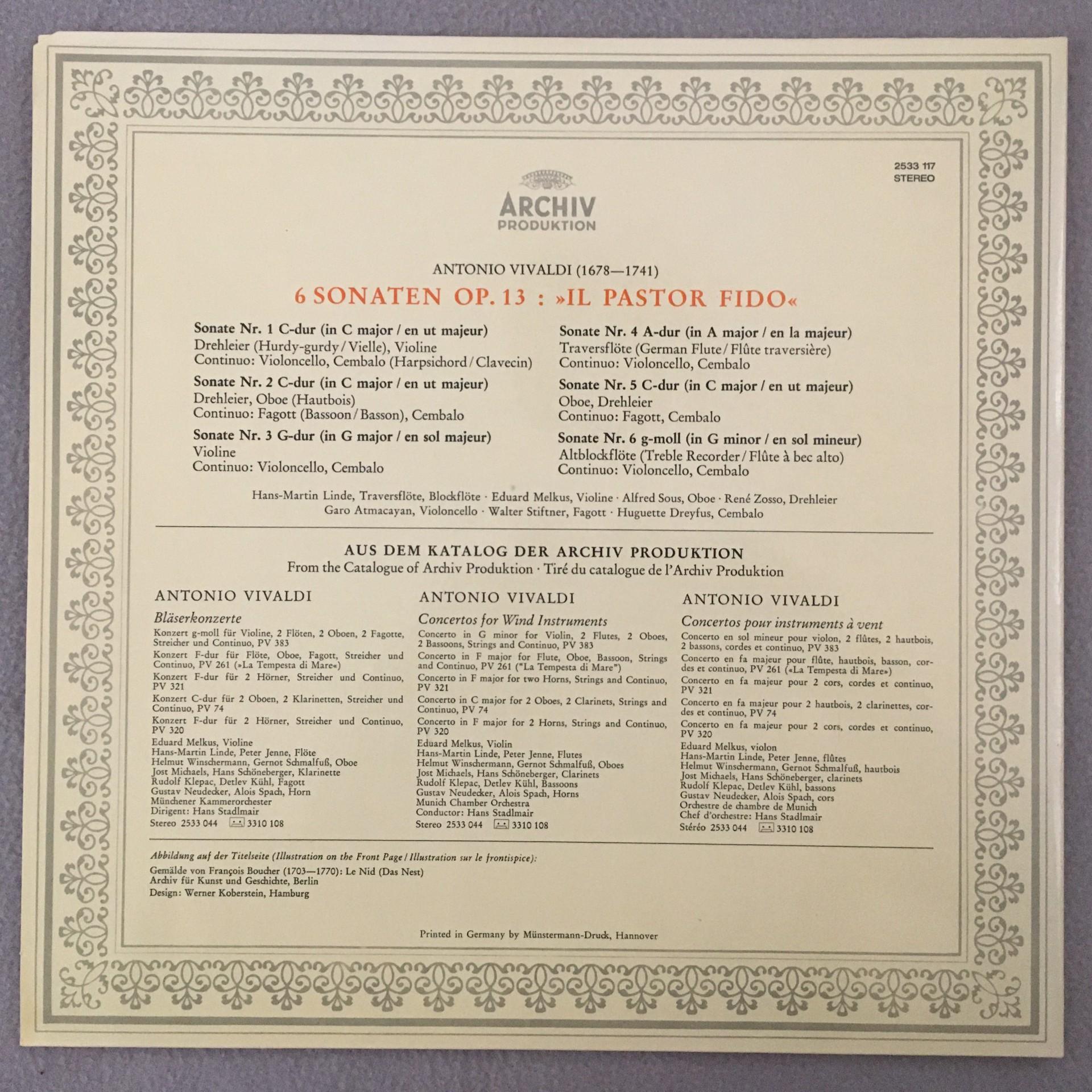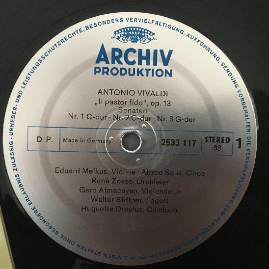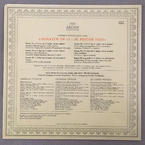 P563 Vivaldi 6 Sonatas Op.13 Linde Melkus Dreyfus DGG Archiv 2533 117 Stereo