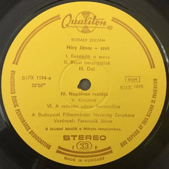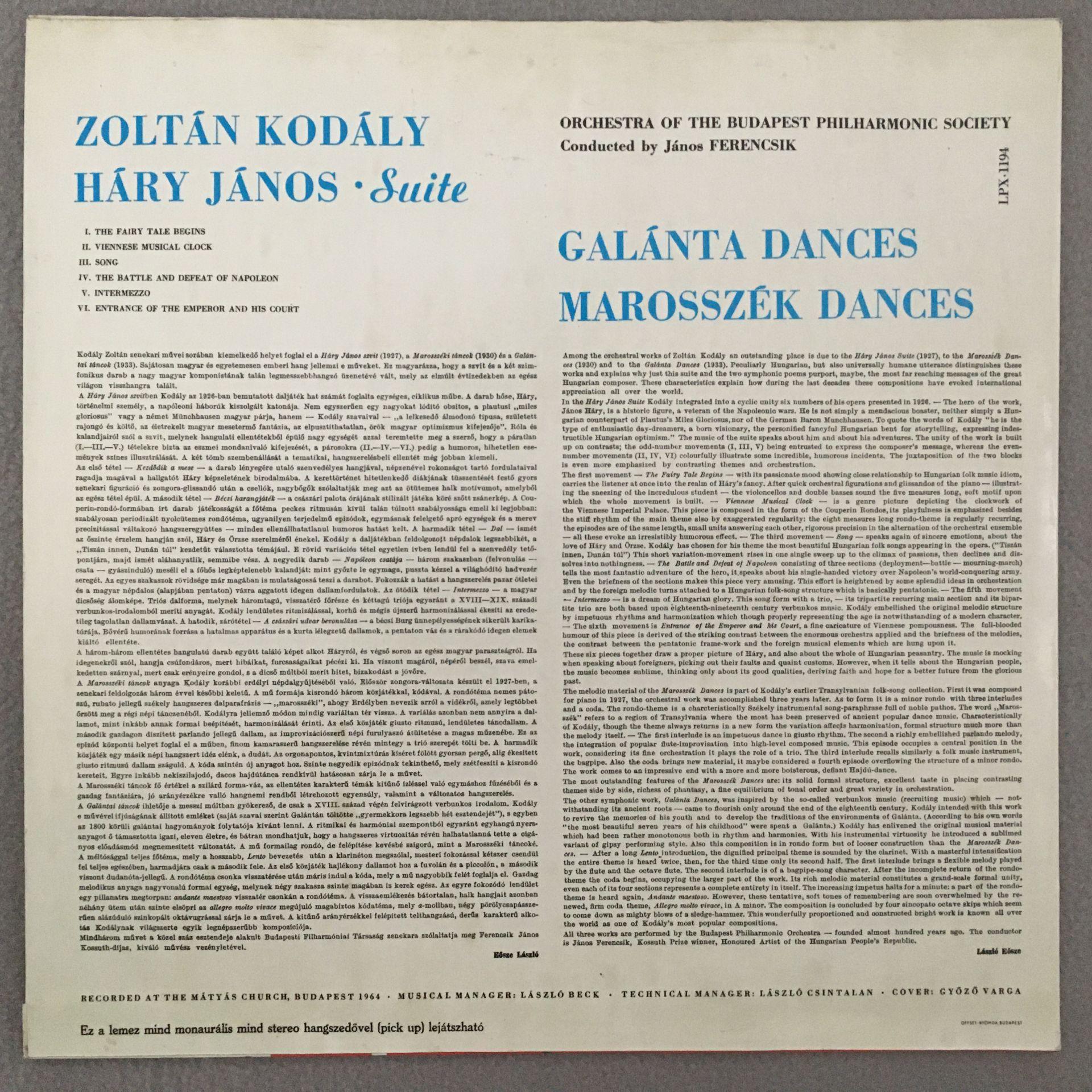 P565 Kodaly Hary Janos Suite Dances Ferencsik Qualiton LPX 1194 Stereo