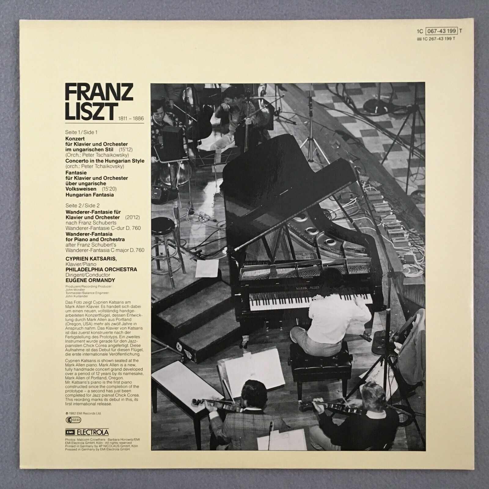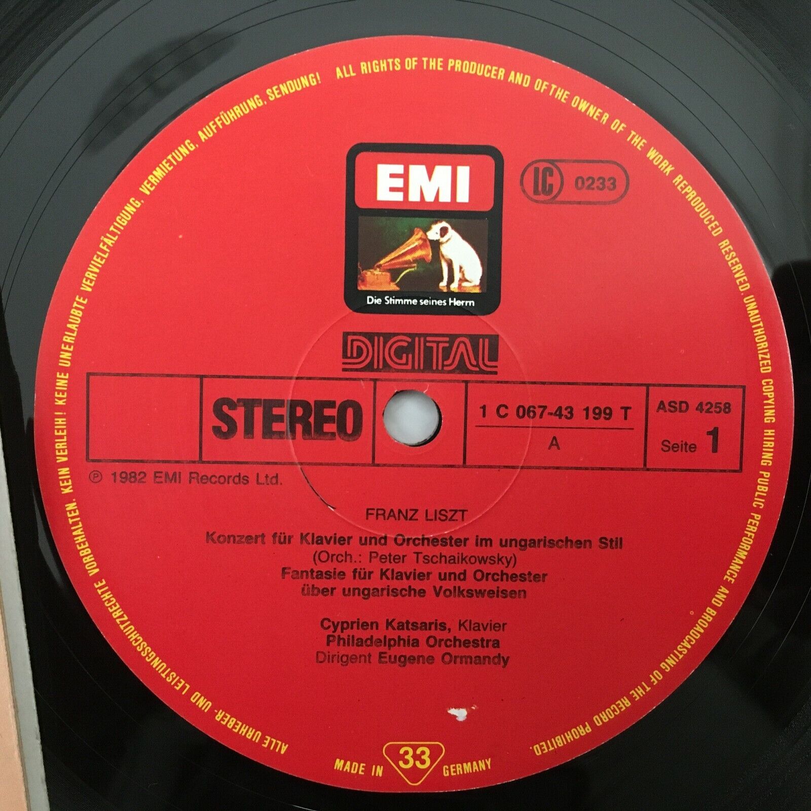 R162 Liszt Piano Concerto Katsaris Ormandy EMI 1C 067-43 199 T Digital Stereo