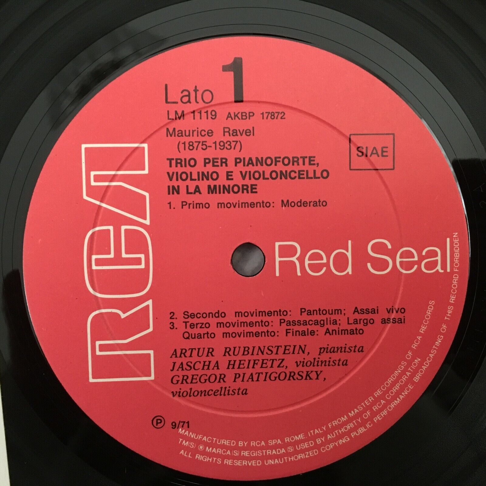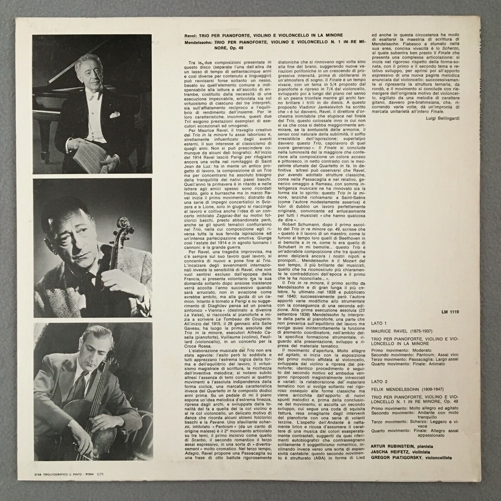 R159 Ravel Mendelssohn Trios Rubinstein Heifetz Piatigorsky RCA LM 1119