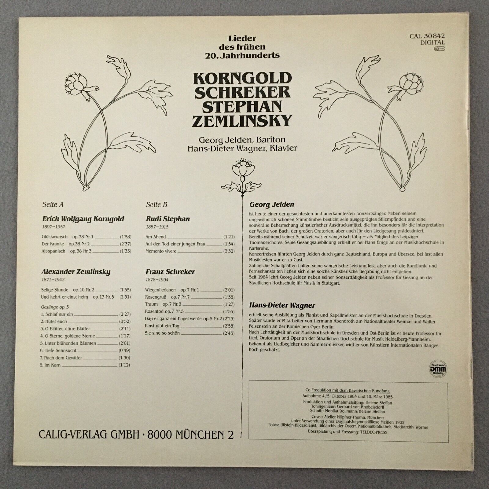 R149 Korngold Zemlinsky Stephan Songs Jelden Wagner Calig CAL 30 842 Digital St