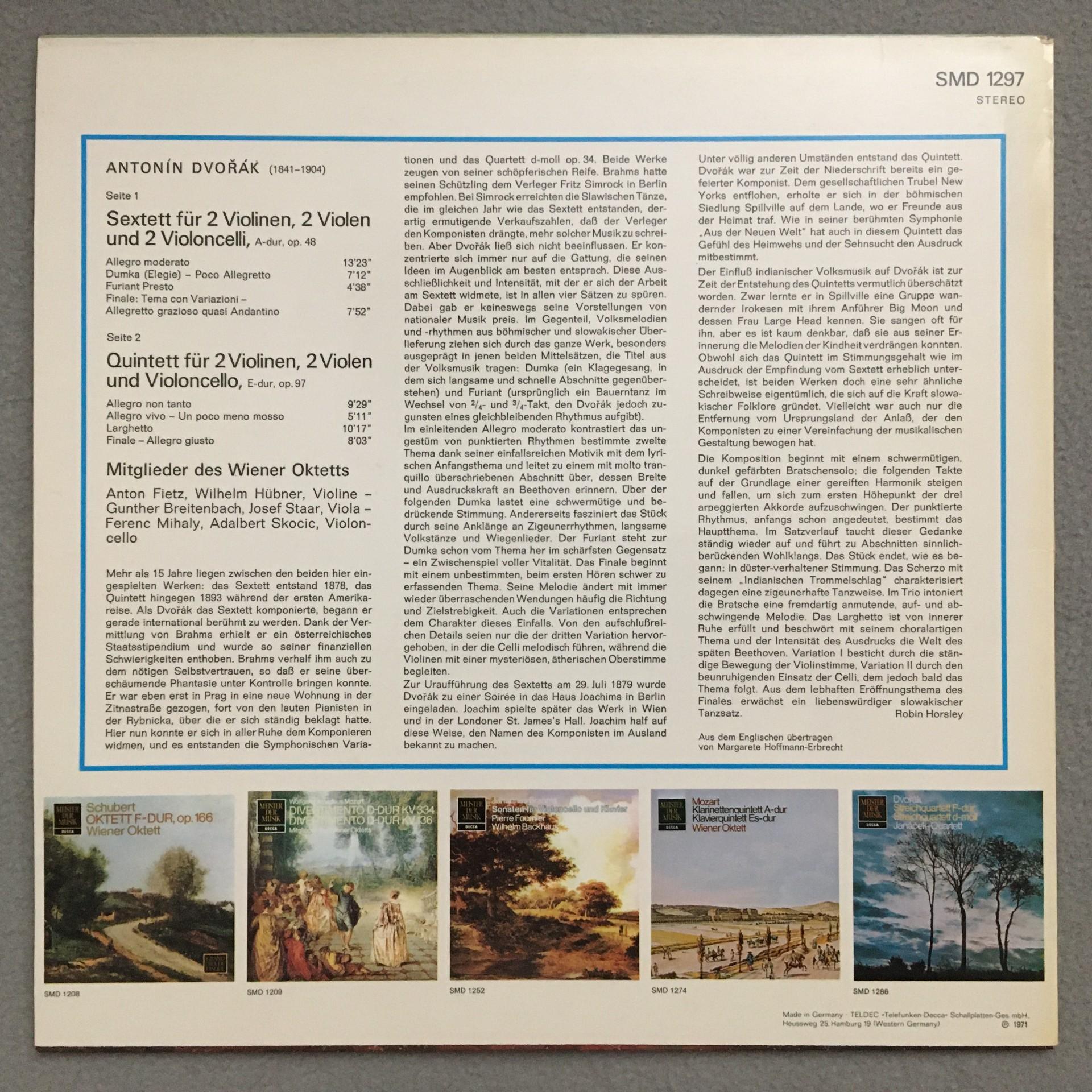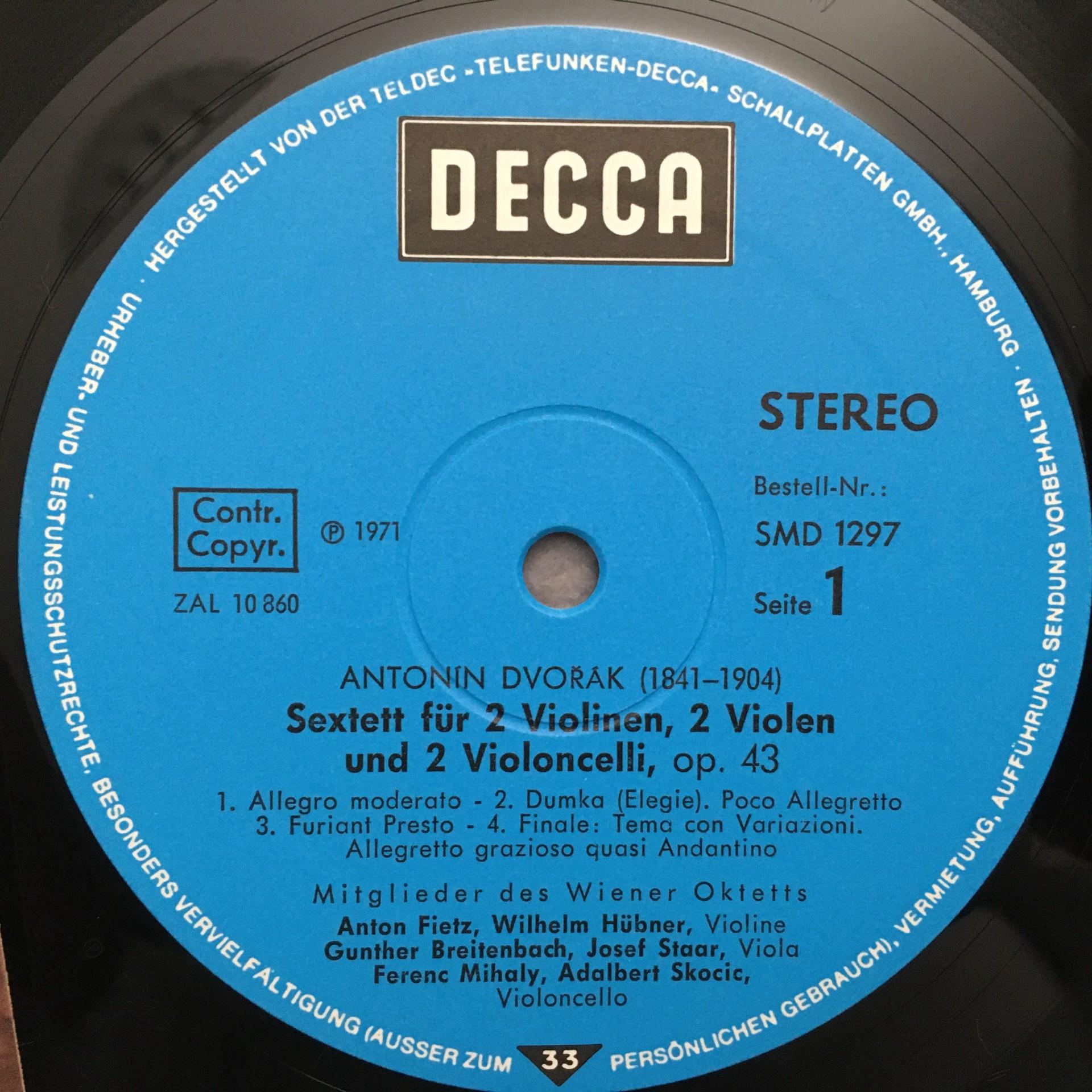 P578 Dvorak String Sextet Quintet Vienna Octett Decca SMD 1297 Stereo