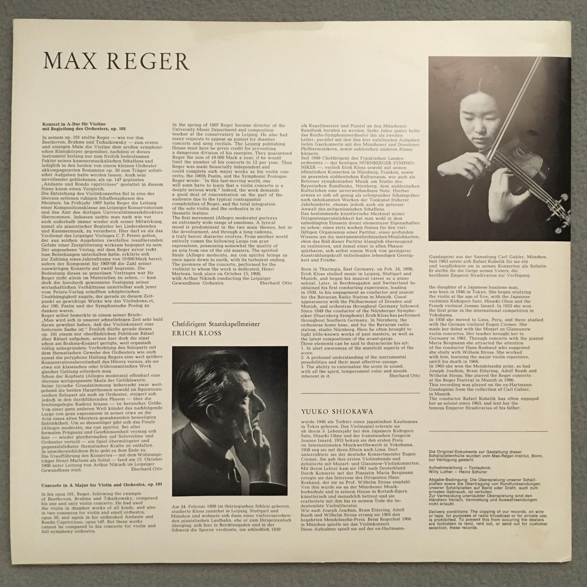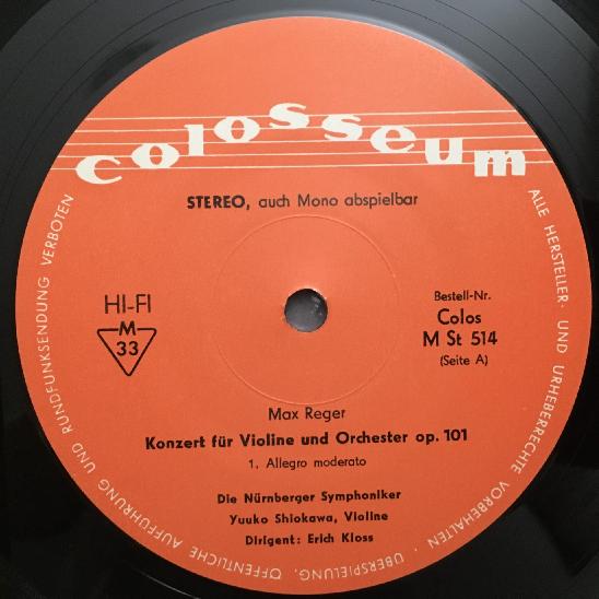 P581 Reger Violin Concerto Shiokawa Kloss Colosseum Colos/MSt 514 Stereo